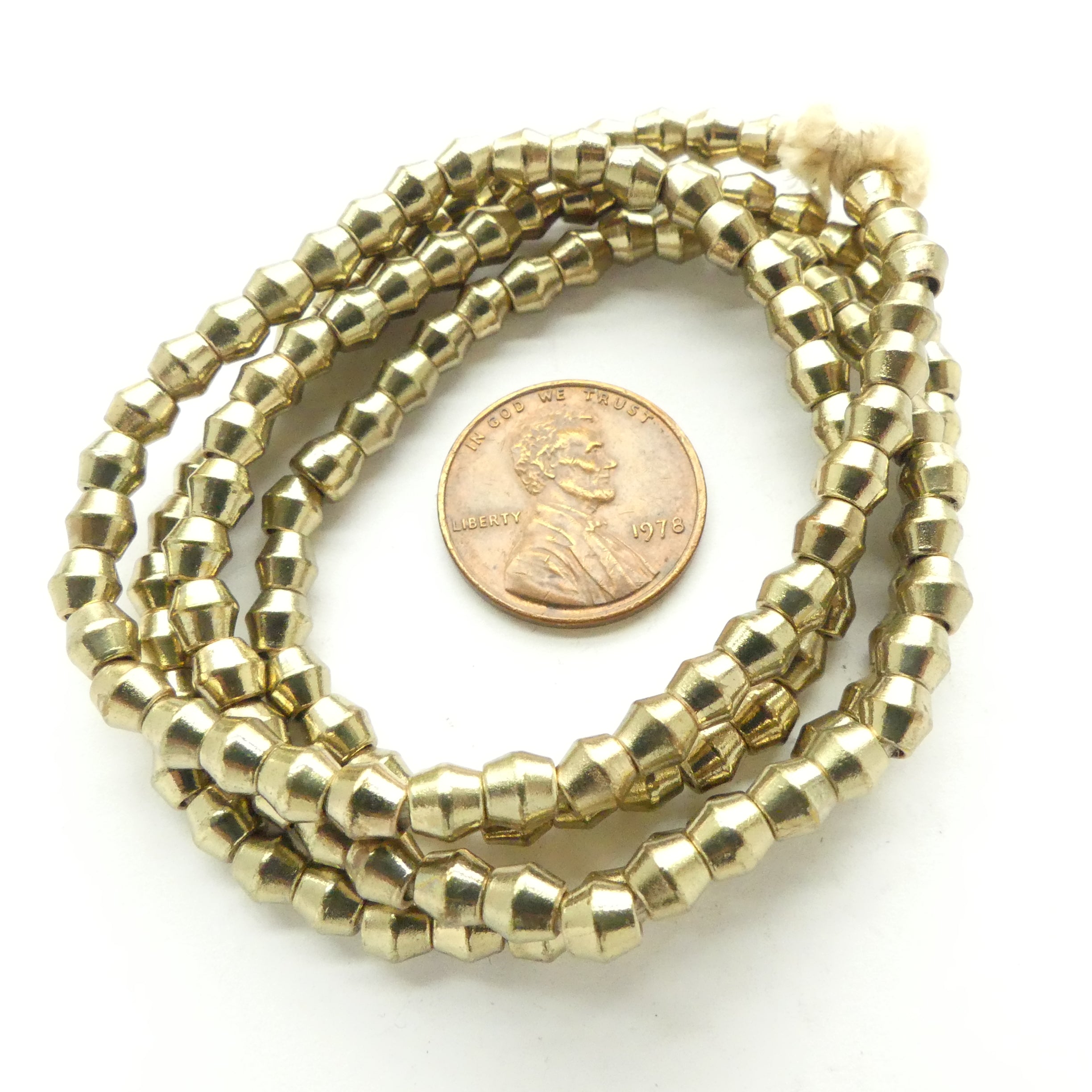 Brass, Small Bicones 4mm long and 4mm Wide at Center on 24-inch Strands