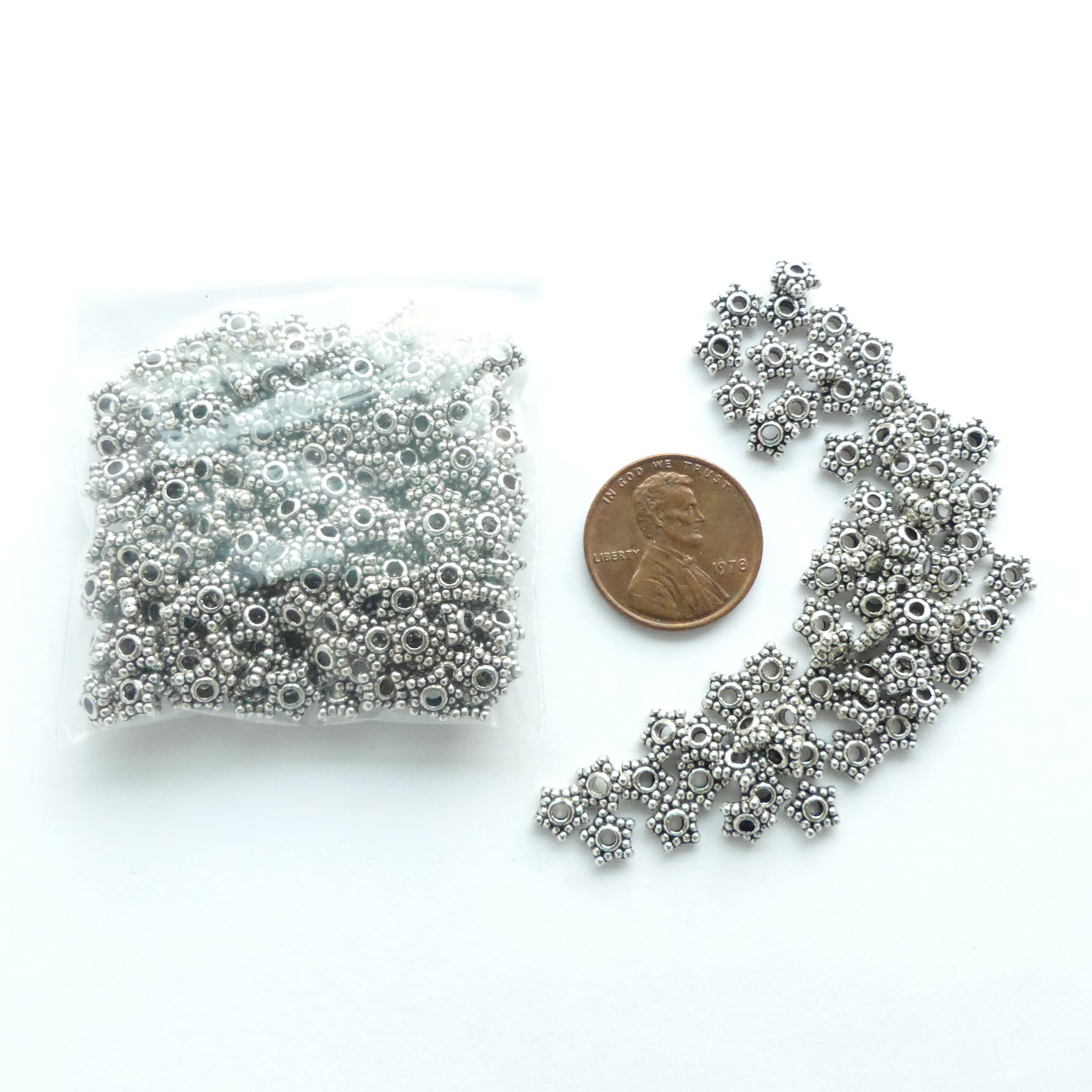 - Package of 30 grams of silver-tone granulated-look spacers 2x5mm