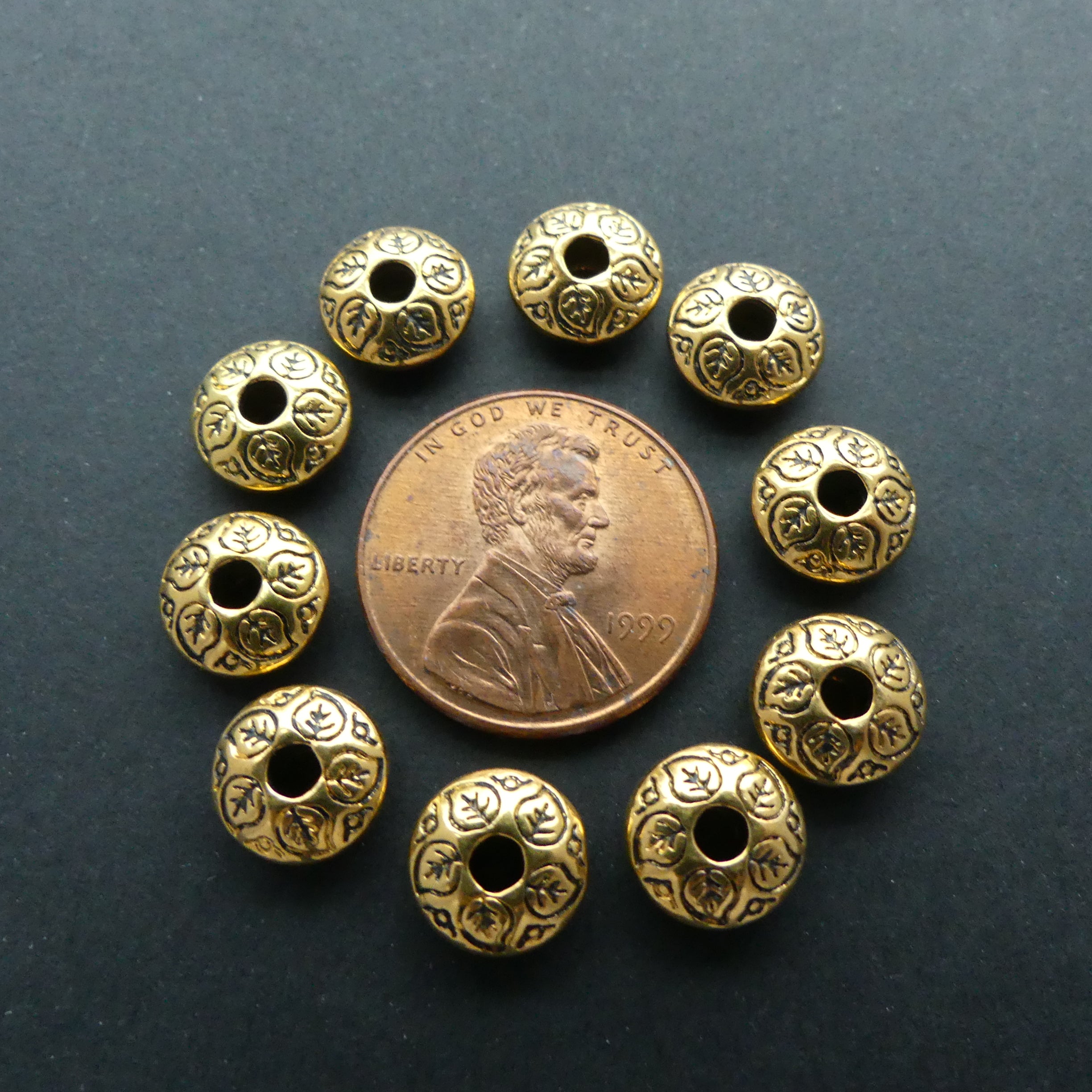 Cast Gold Tone Decorated Rondelles 4x8mm, Pkg of 30 grams