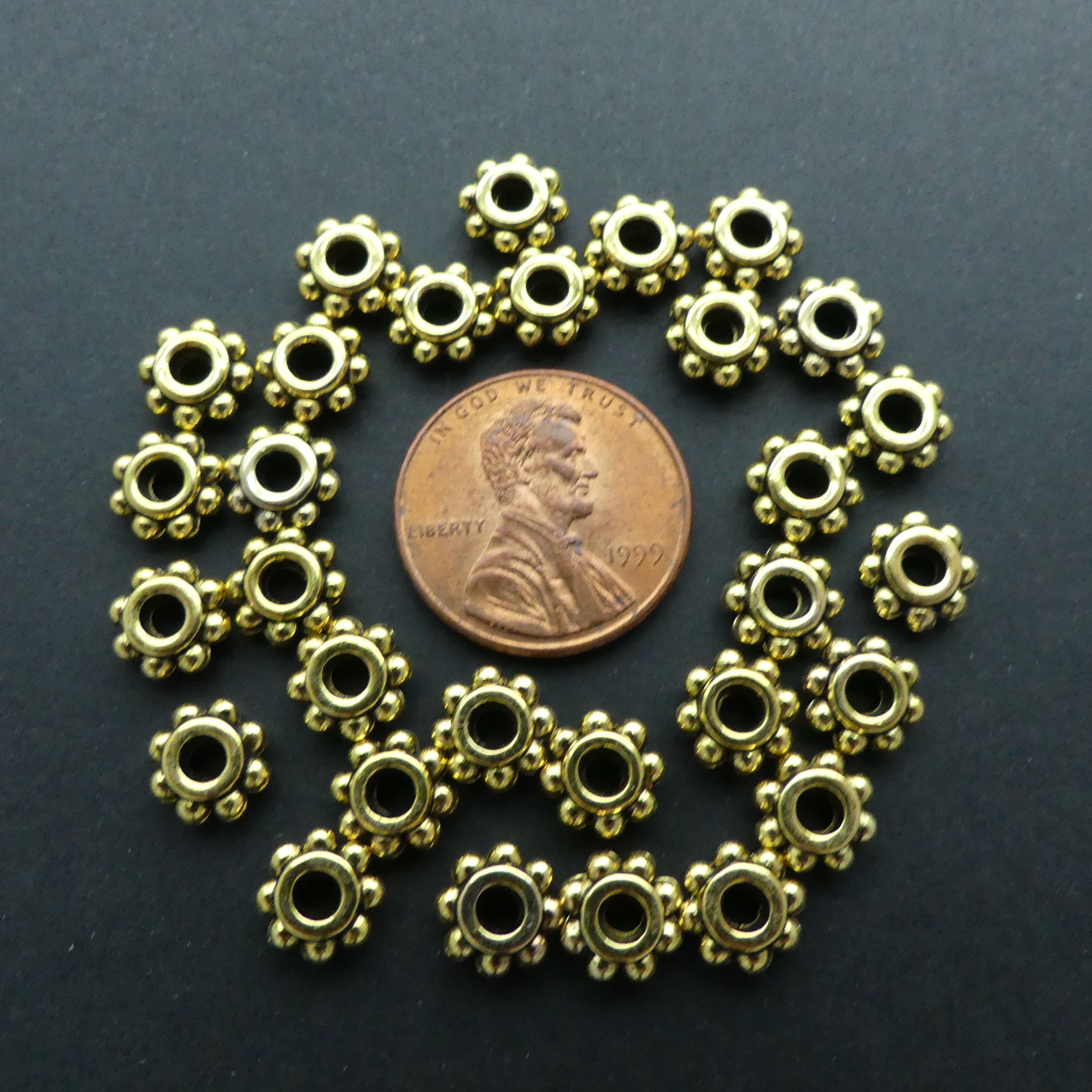 Cast Gold Tone Large Hole Daisy Spacers 3x7mm, Pkg of 30 grams