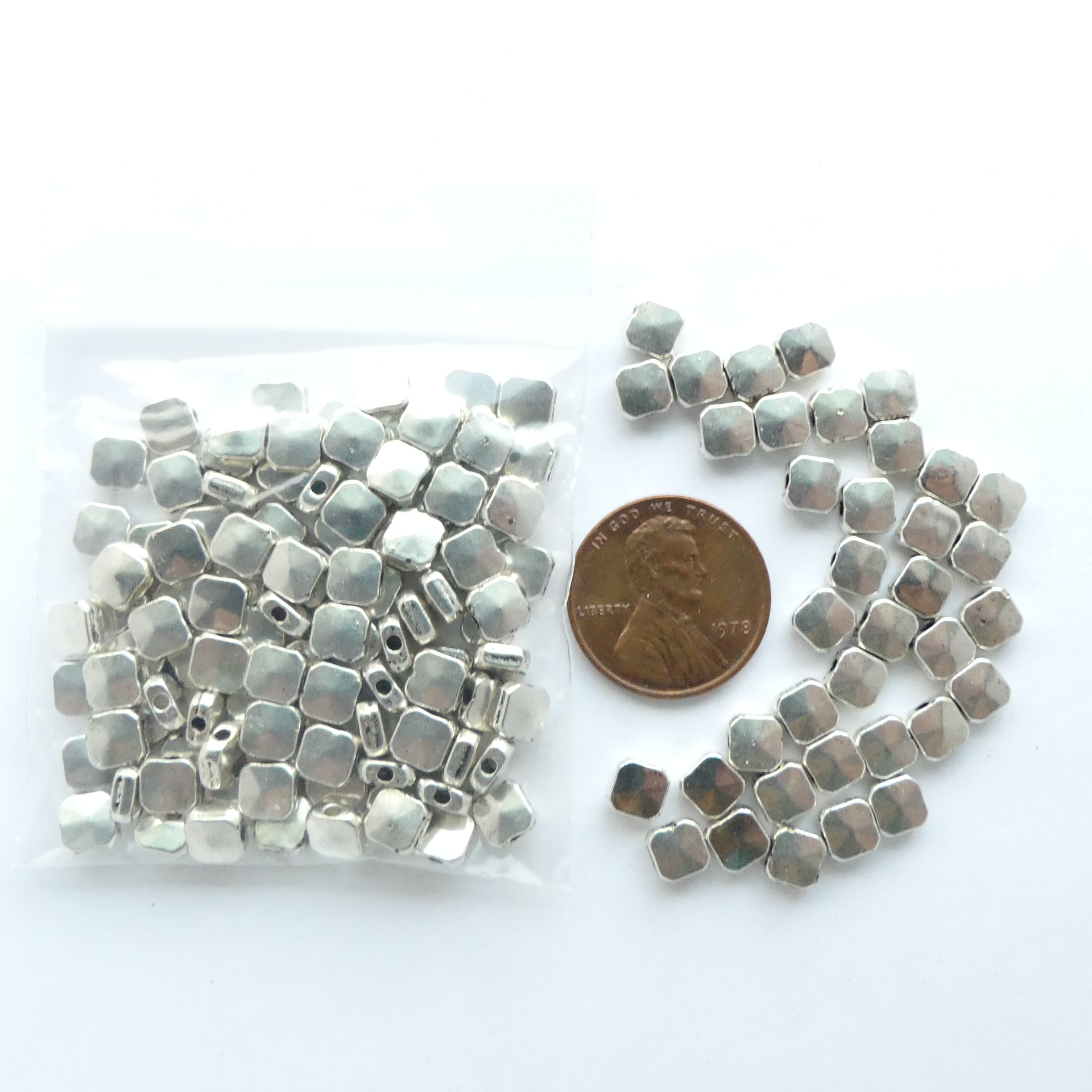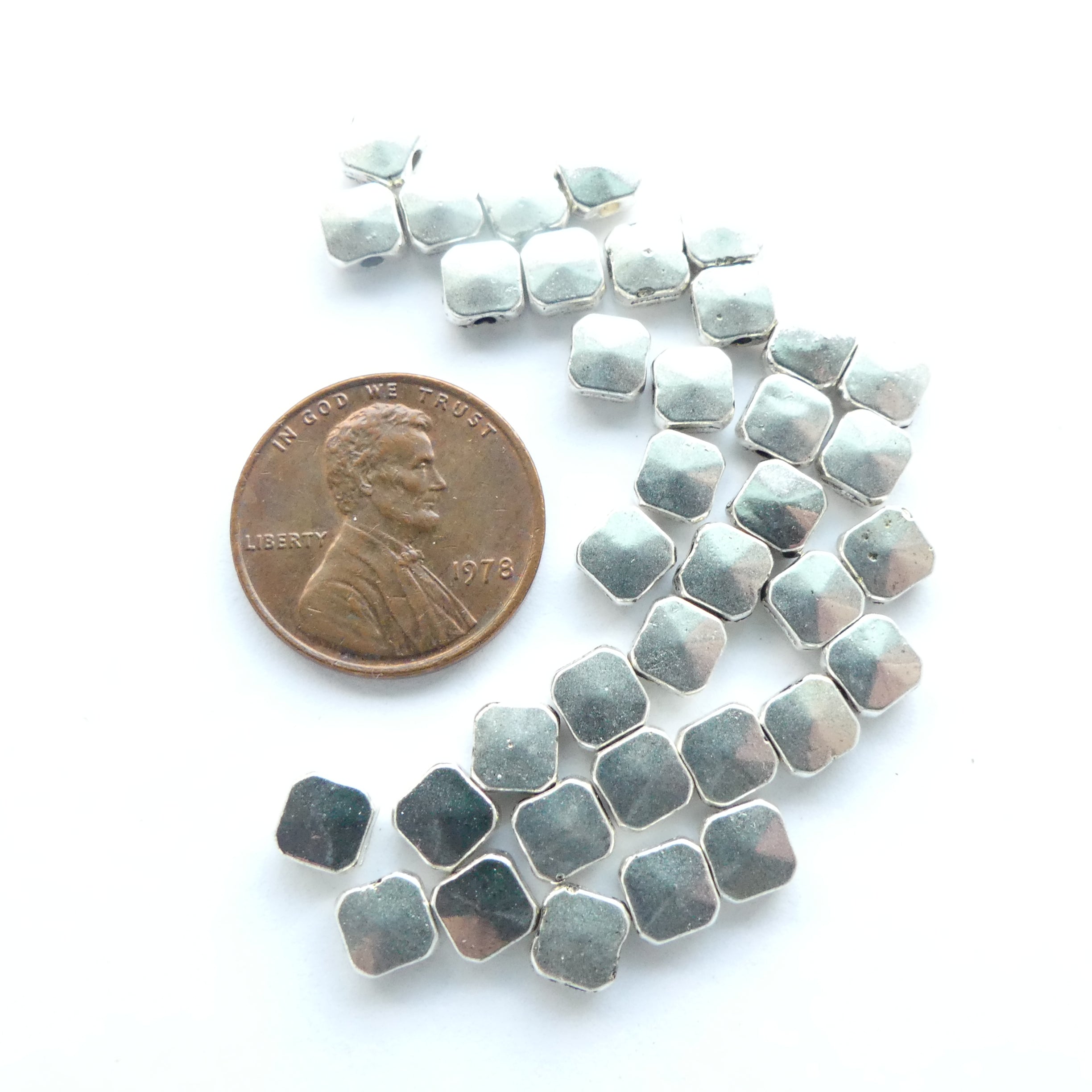 - Package of 30 grams of cast silver-tone mini, slightly domed square beads sometimes called "chicklets" 3x5mm
