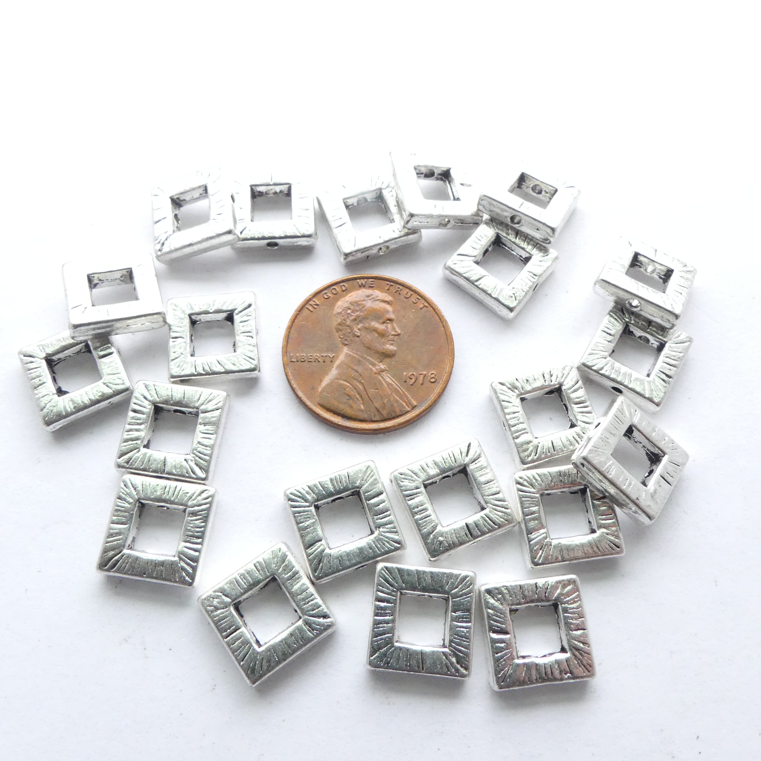 Cast Silver-tone Square Frame Beads, 10x3mm, Set of 8