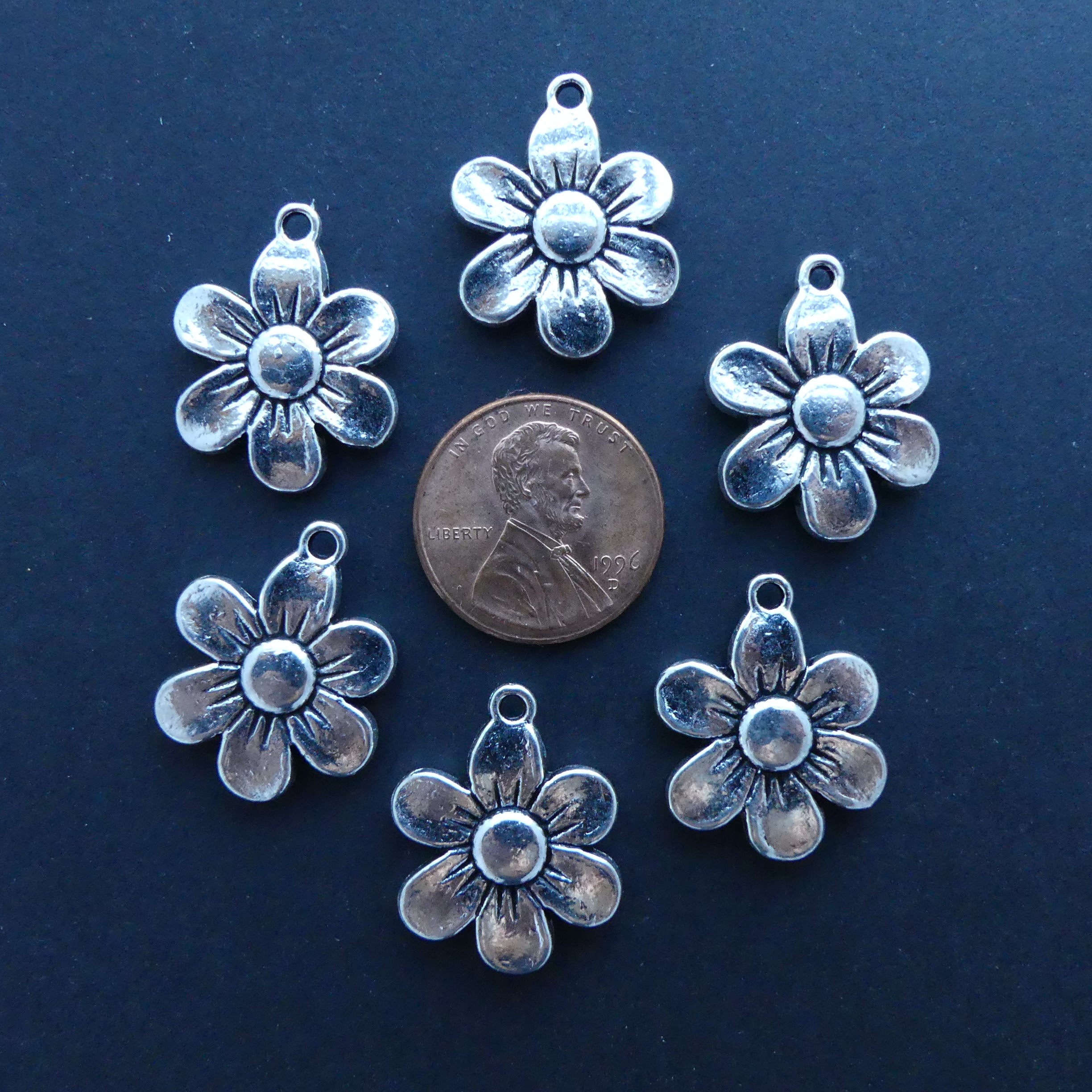Cast White Metal Flower Pendants 17mm, Set of 12