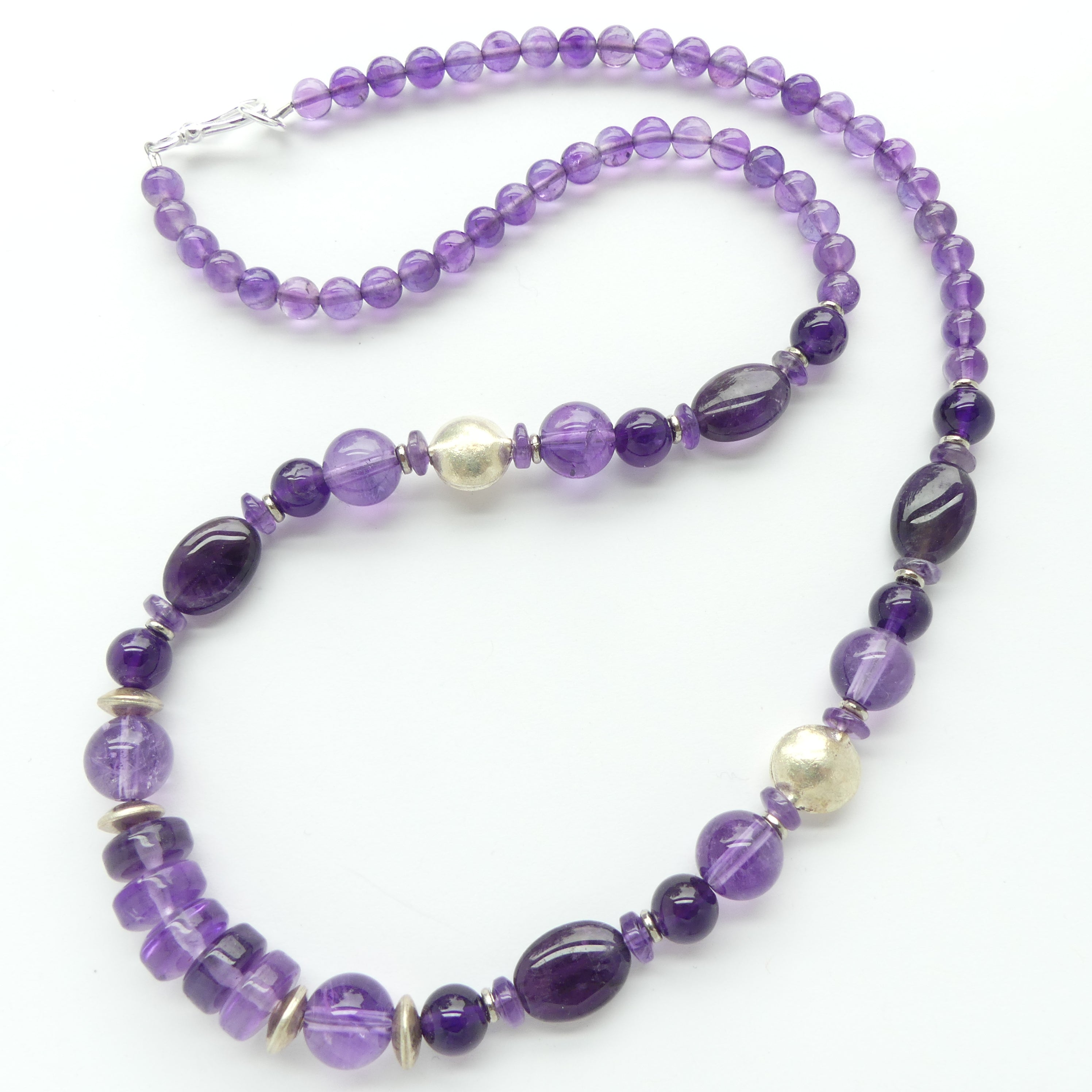 Amethyst Necklace with Various Shape Beads and Thai Silver Beads, 23 inches long