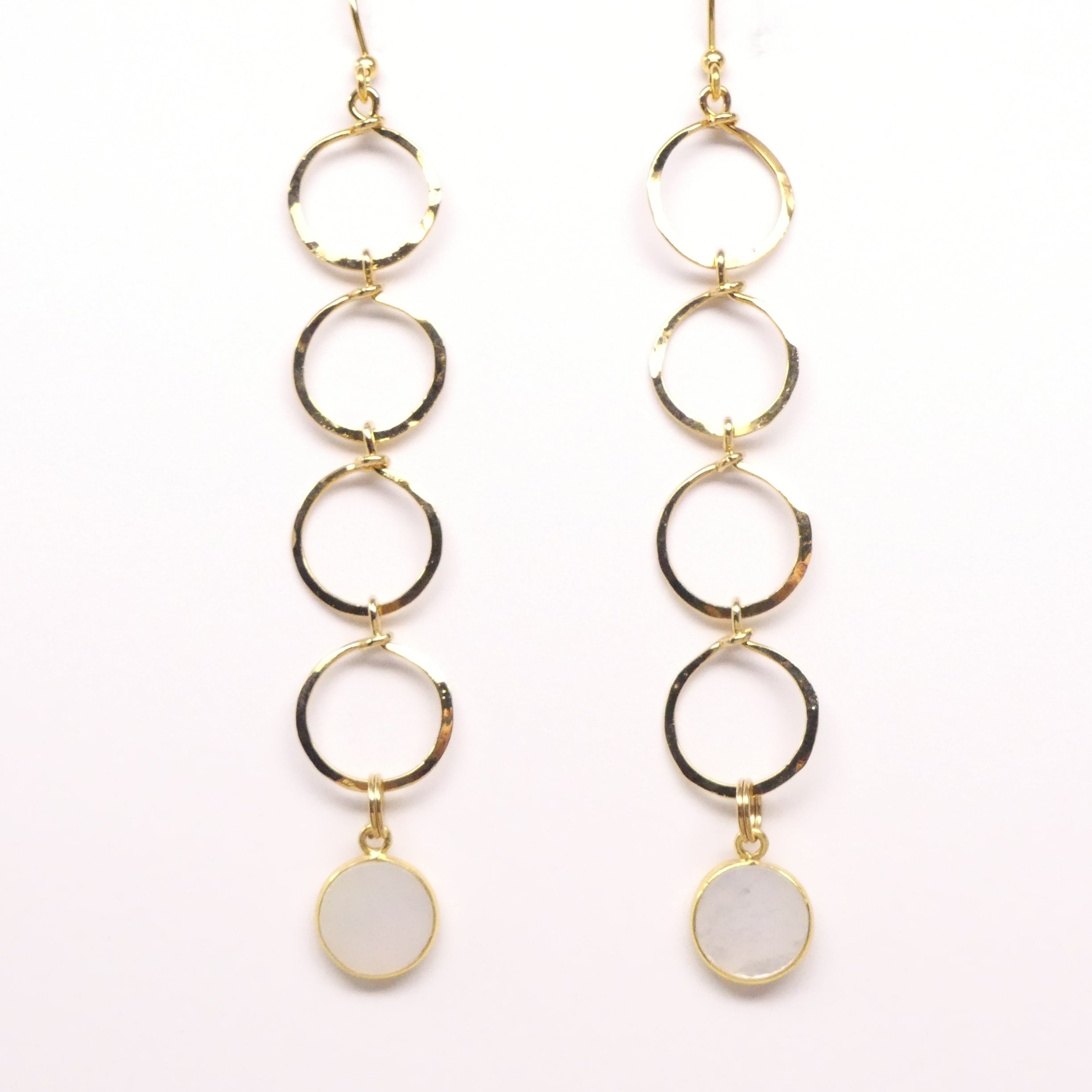 - Mother of Pearl slices swing free at the end of hammered brass ring chain