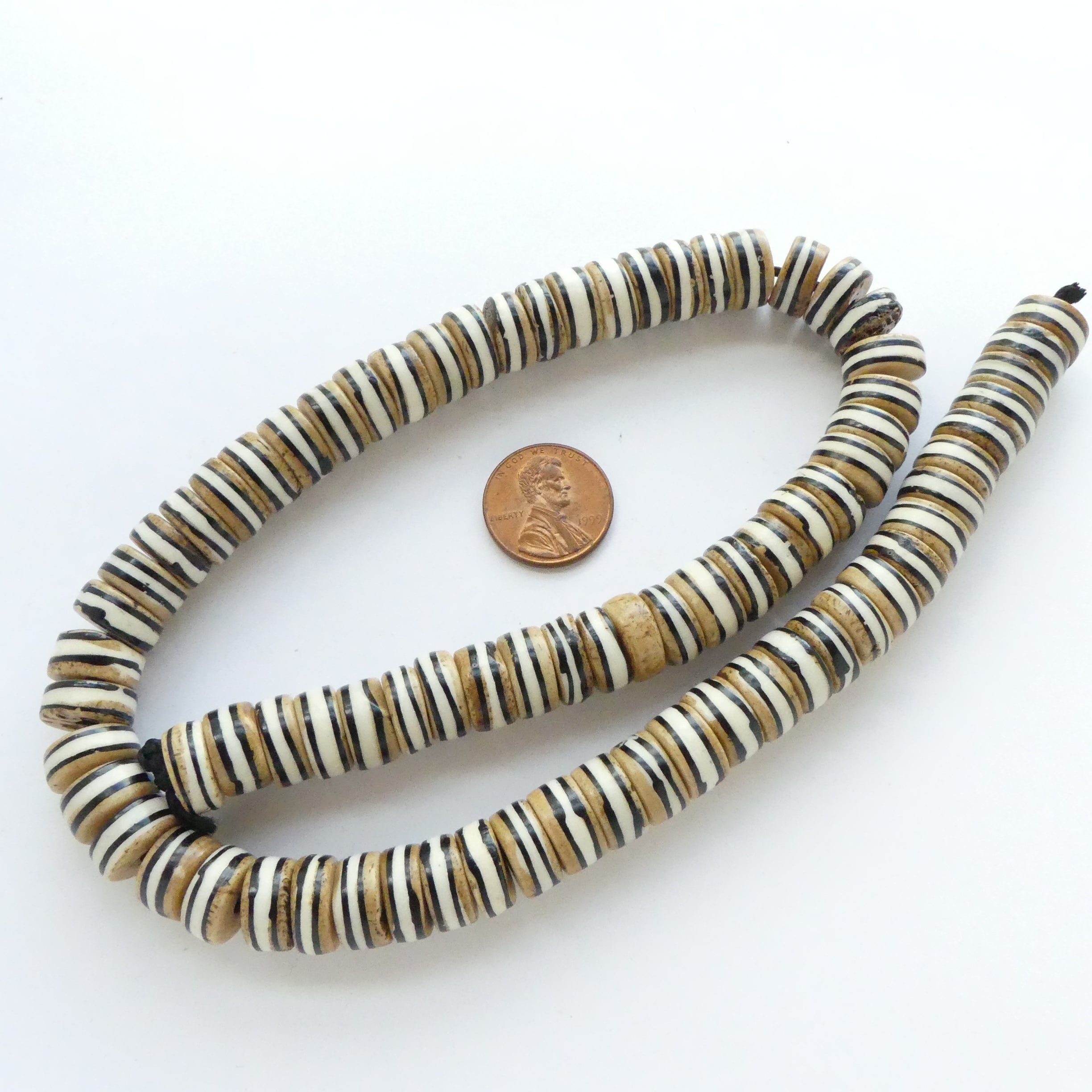 Batik Bone Slices, Beige, Black & White Stripe, 6x12mm on 17-inch Strands