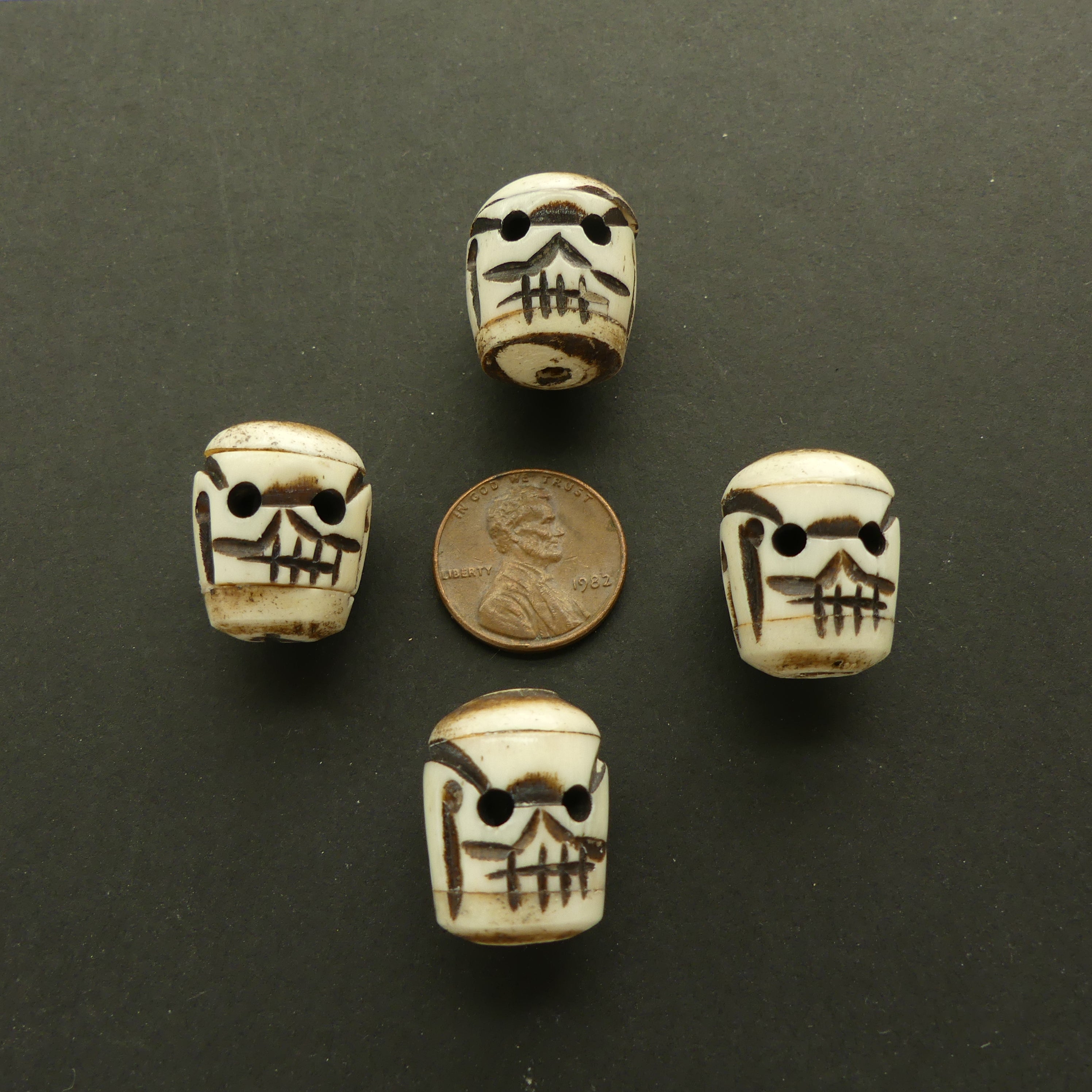 Bone, Skull Medium Large Beads, Hand-carved in India, 18x18mm, Sold by the Set of 4