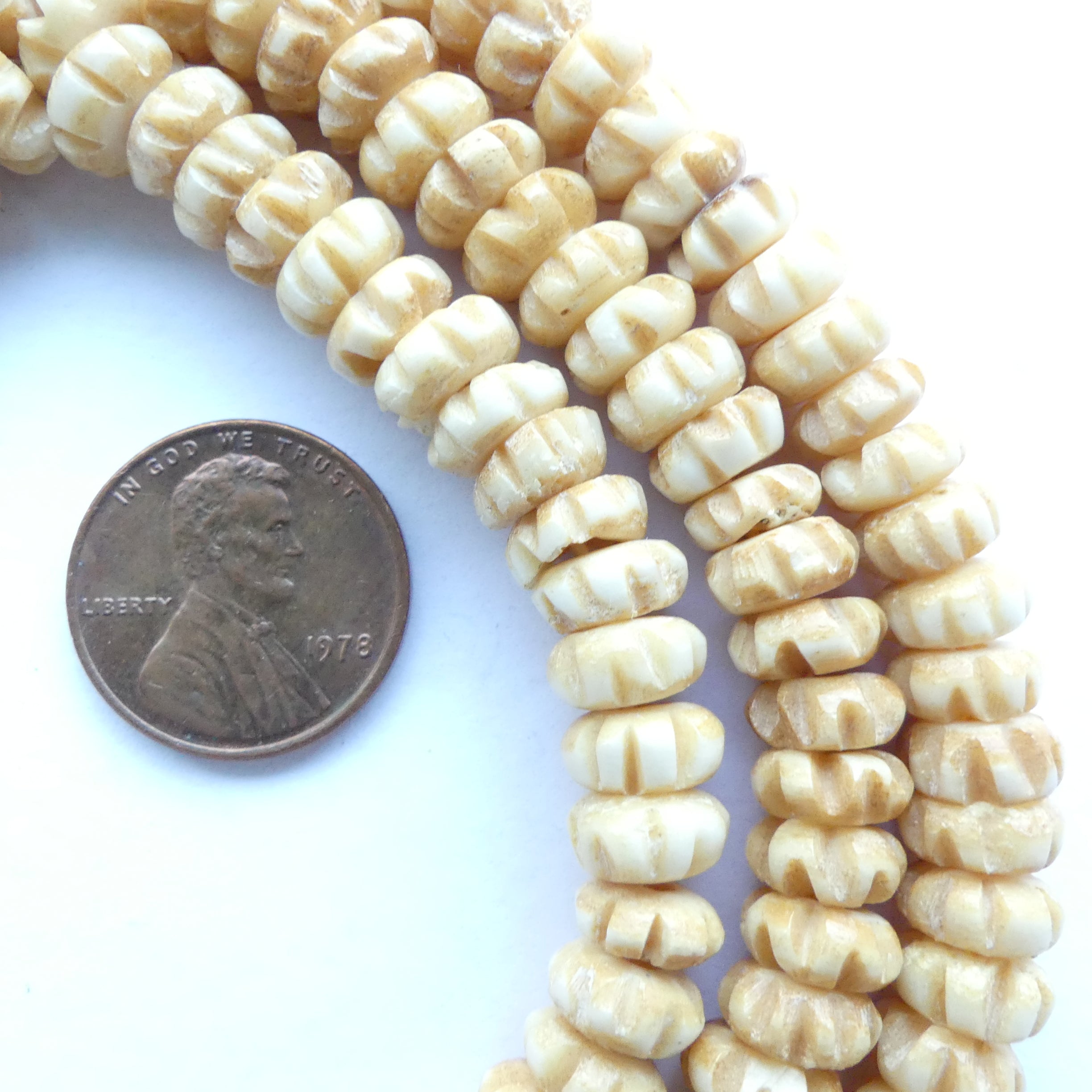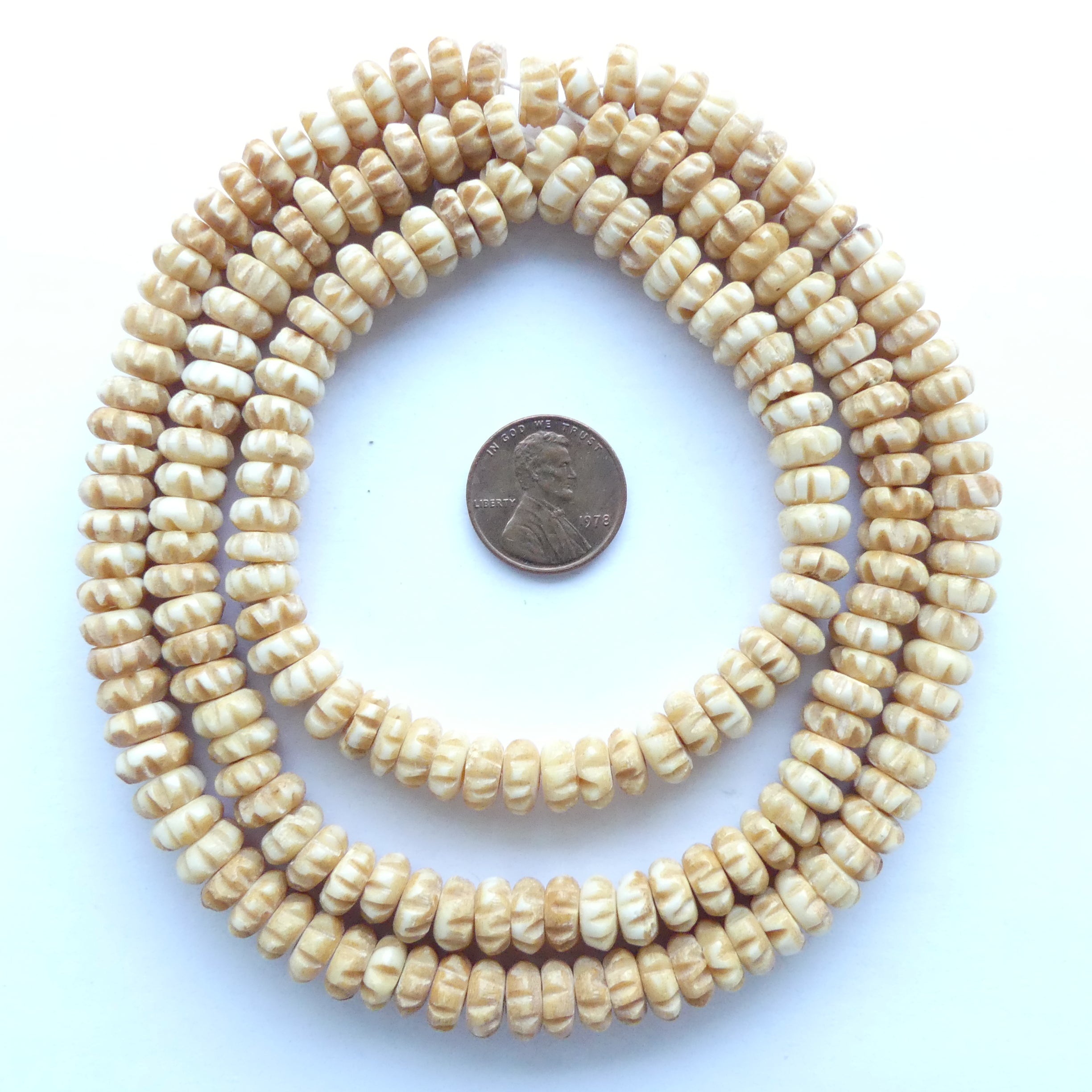 Bone, Ruffled Edge Beads 3x9mm, Long Strand