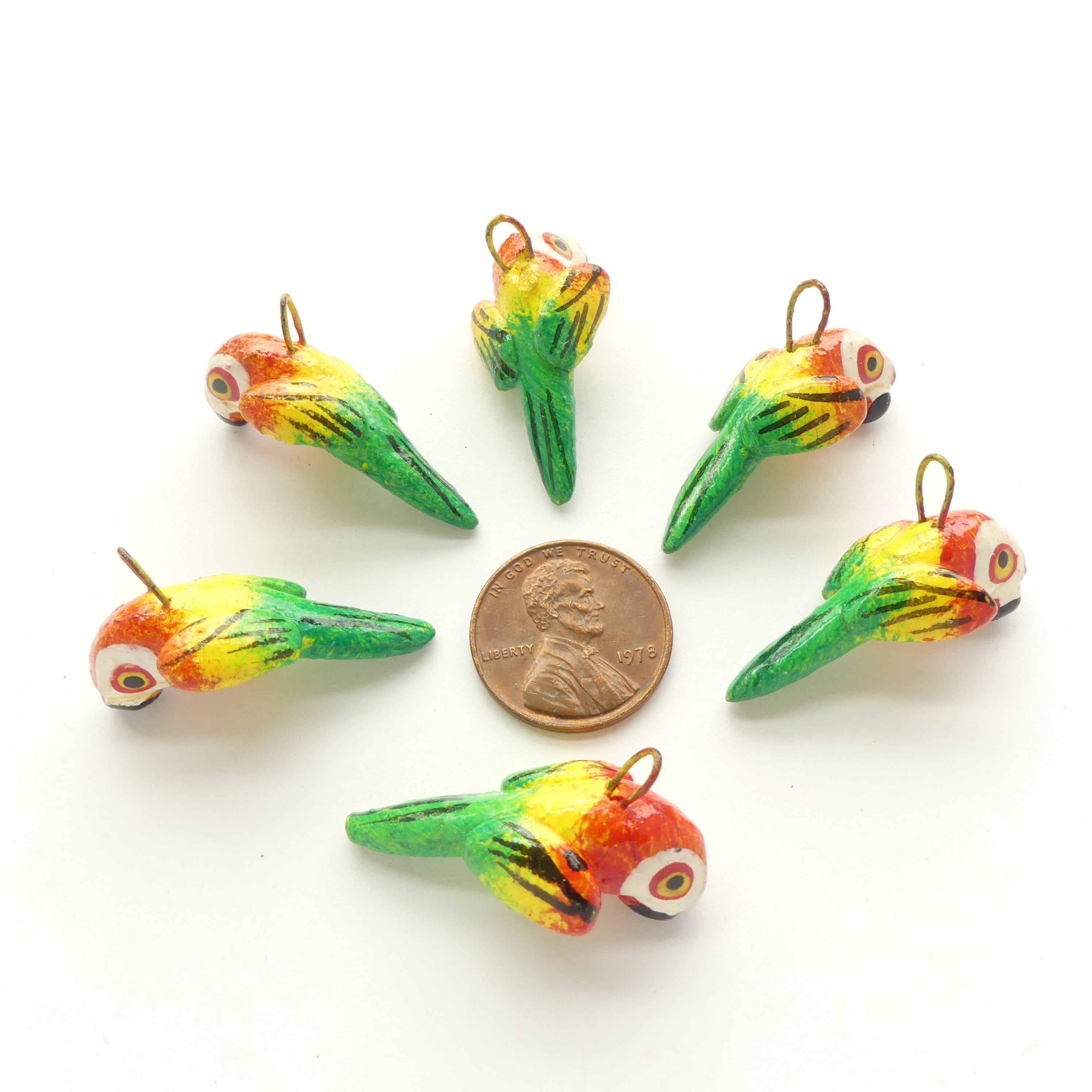 Clay Birds, Mini, Guatemalan, Multicolor Parrots, 30mm, Sets of 6