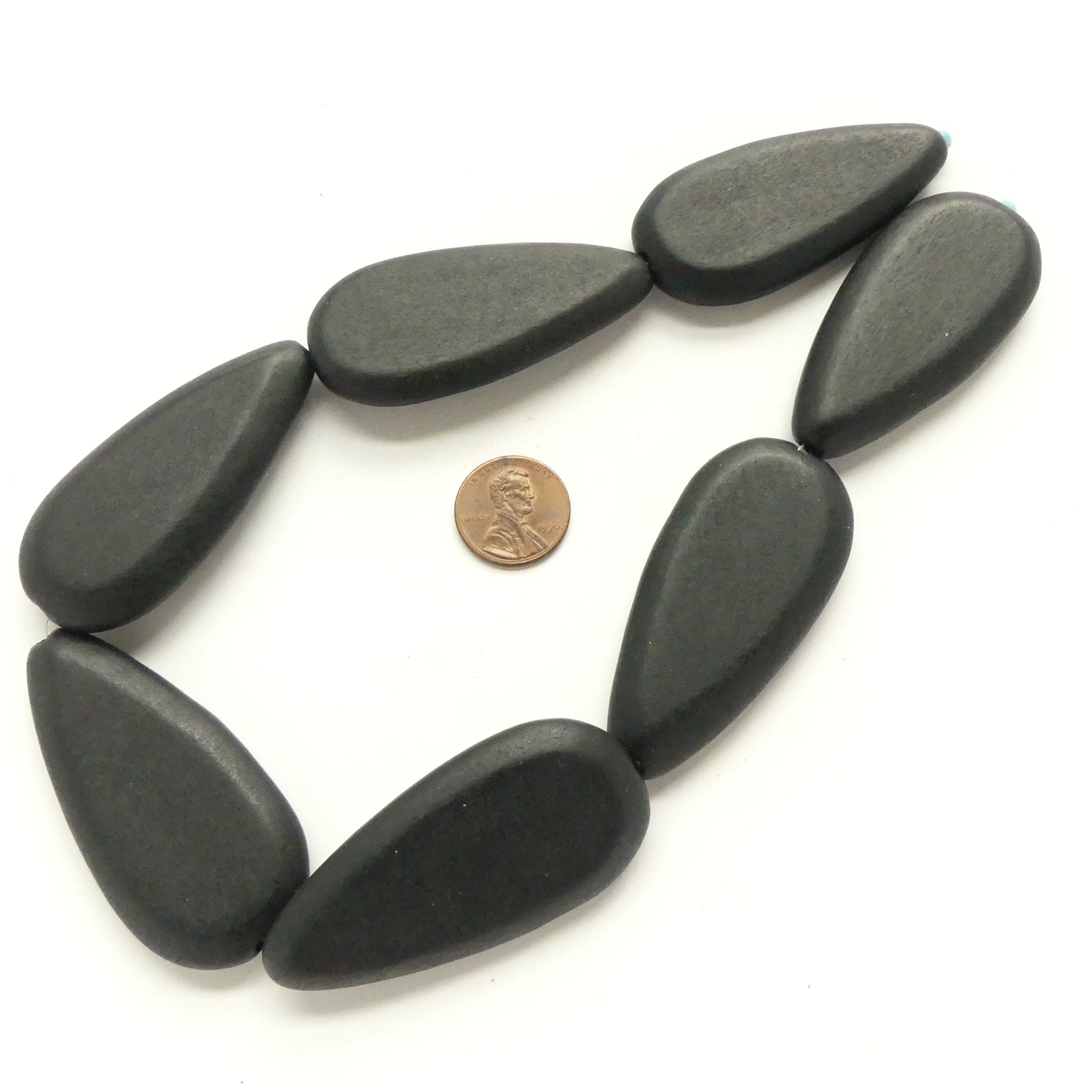 - Lightweight large teadrdop shape wood beads, semi-matte black finish