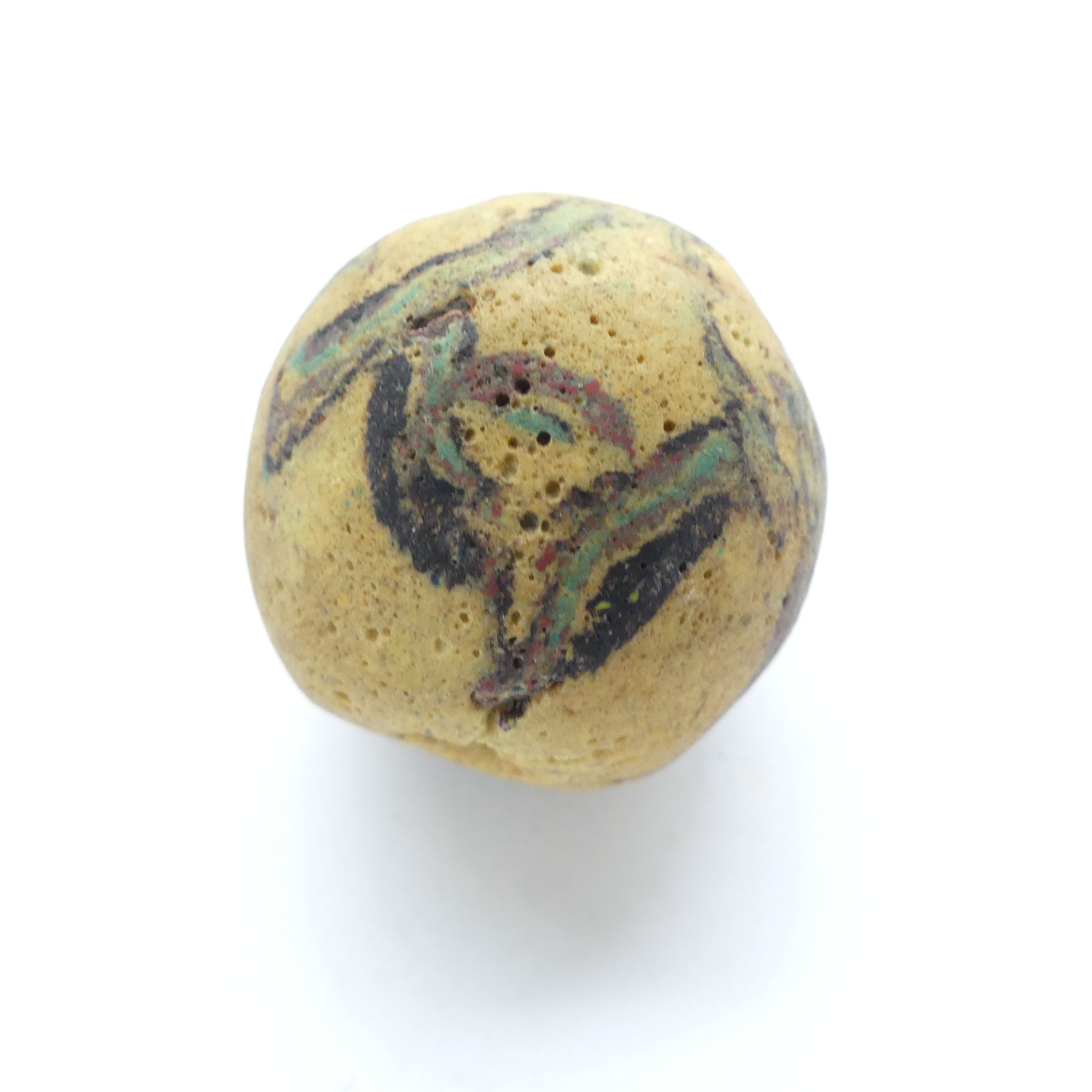 - Large yellow pouderglass "Bodom" bead with green and brown designs