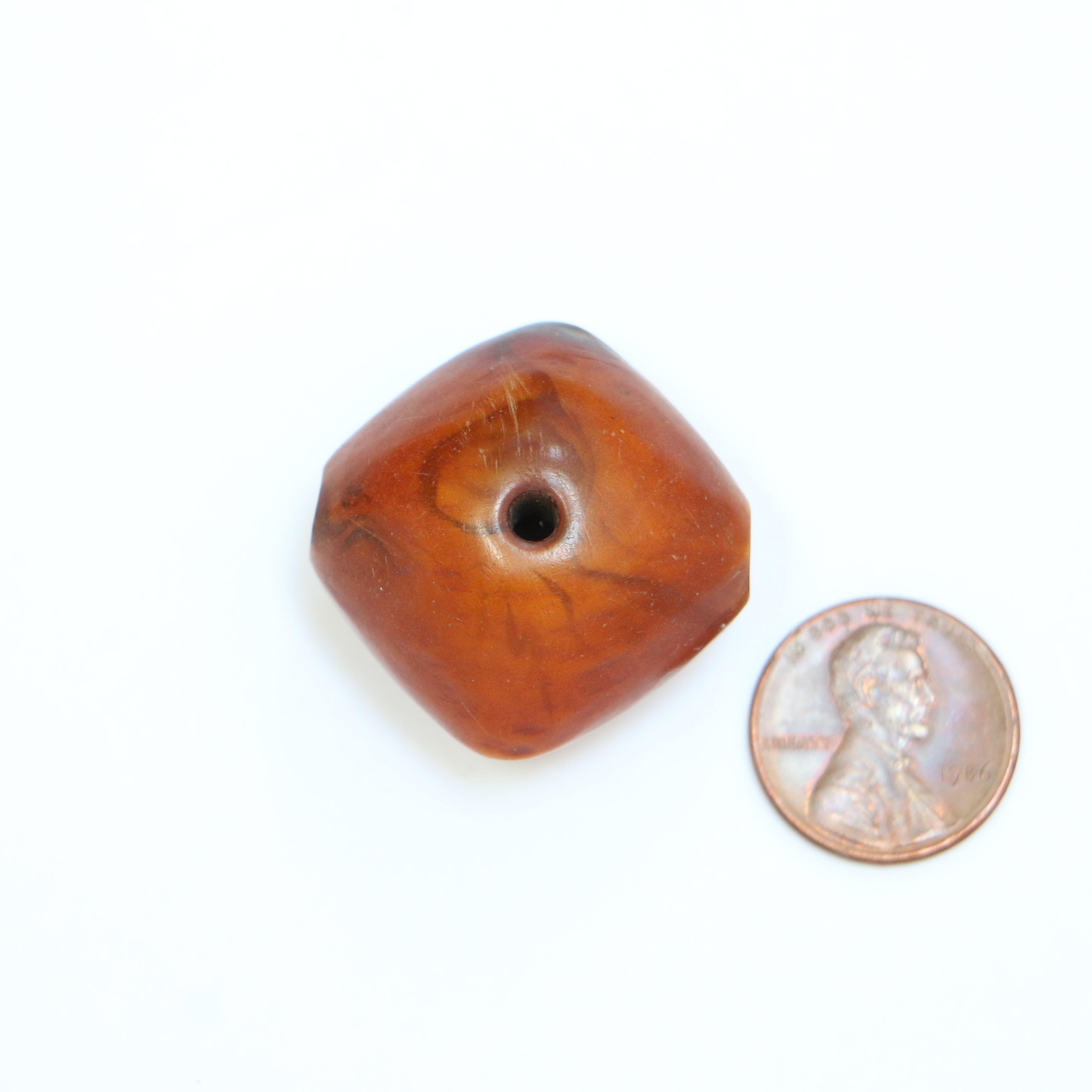 - The dark color indicates that this is one of the earliest African amber beads. The pre-1940 formula darkens over time, later resins did not have this property.
