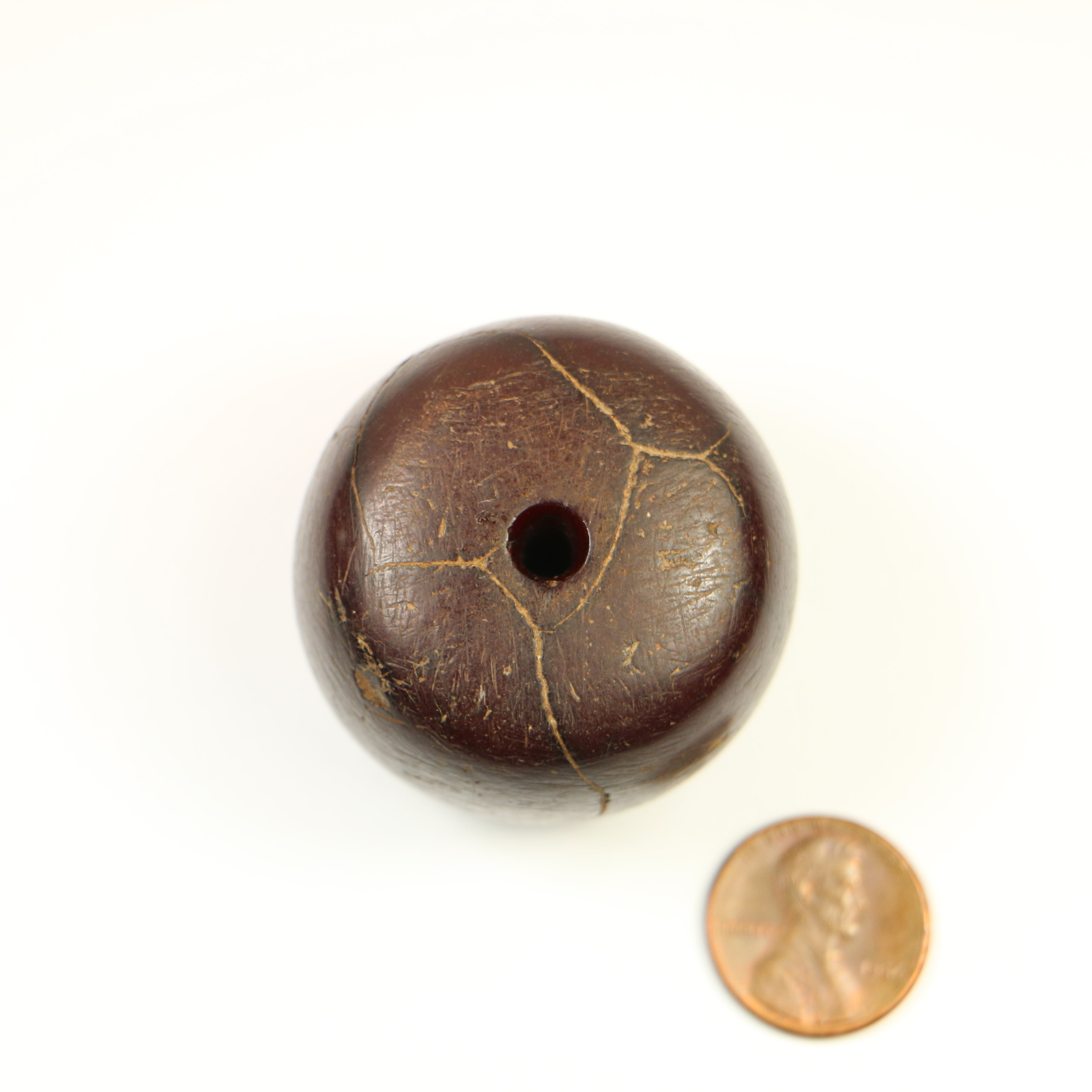 • Giant, reddish, short cylinder bead 35x41mm The dark reddish color and the number of scratches and surface of this bead attest to its age. A light coat of pure coconut oil would probably be very rejuvenating, it benefits other old beads.