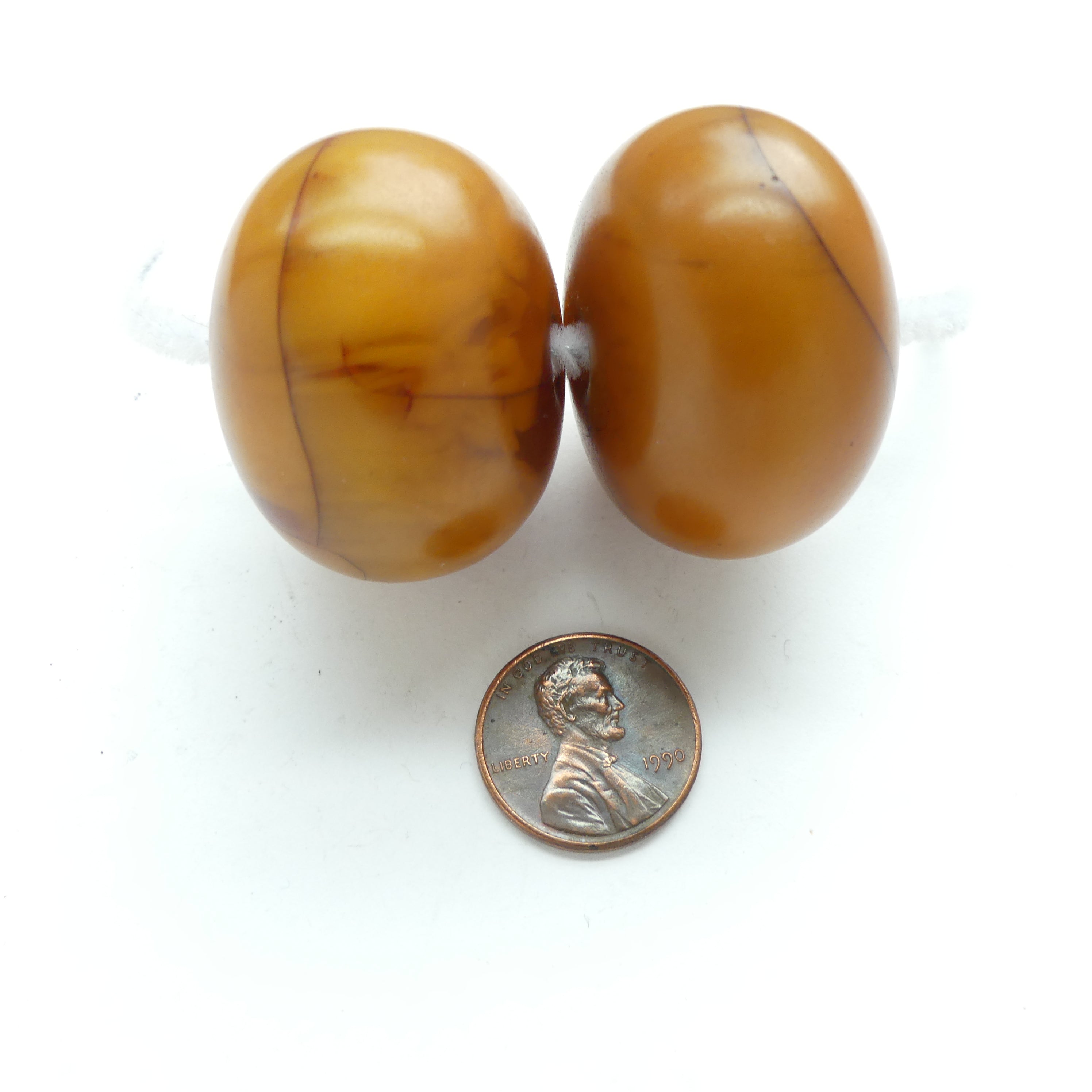 African Amber, Large Deep Caramel Color Beads With Swirls, Set of Two Beads