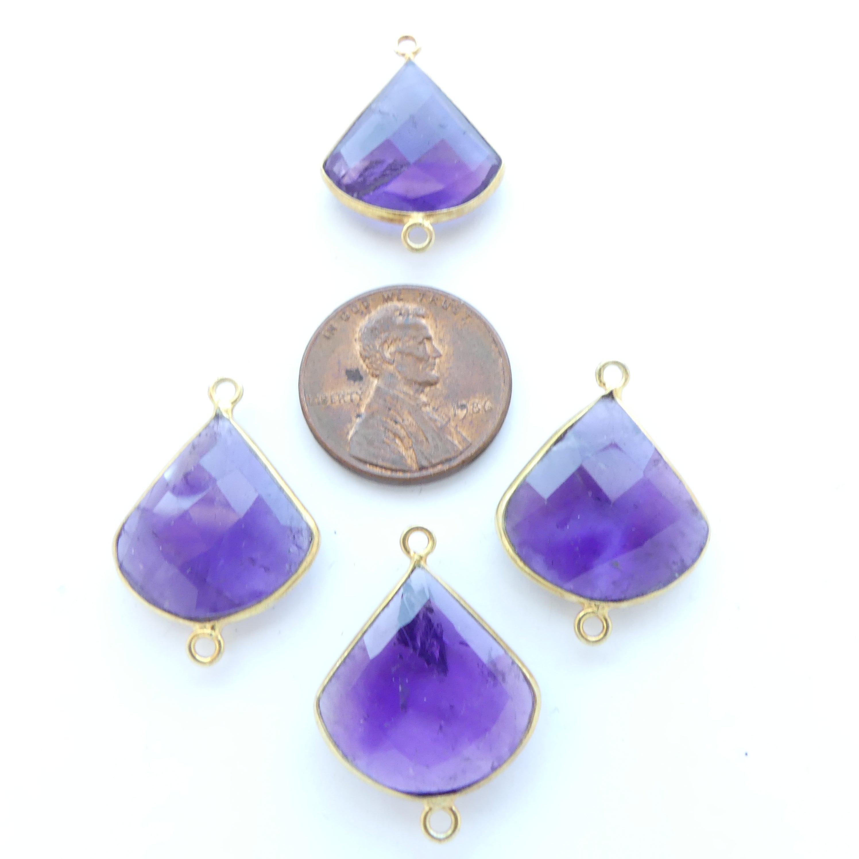 Amethyst, Faceted Triangle Shape Links Bezel-Set in Gold Plate, 24mm Long, Sold Individually