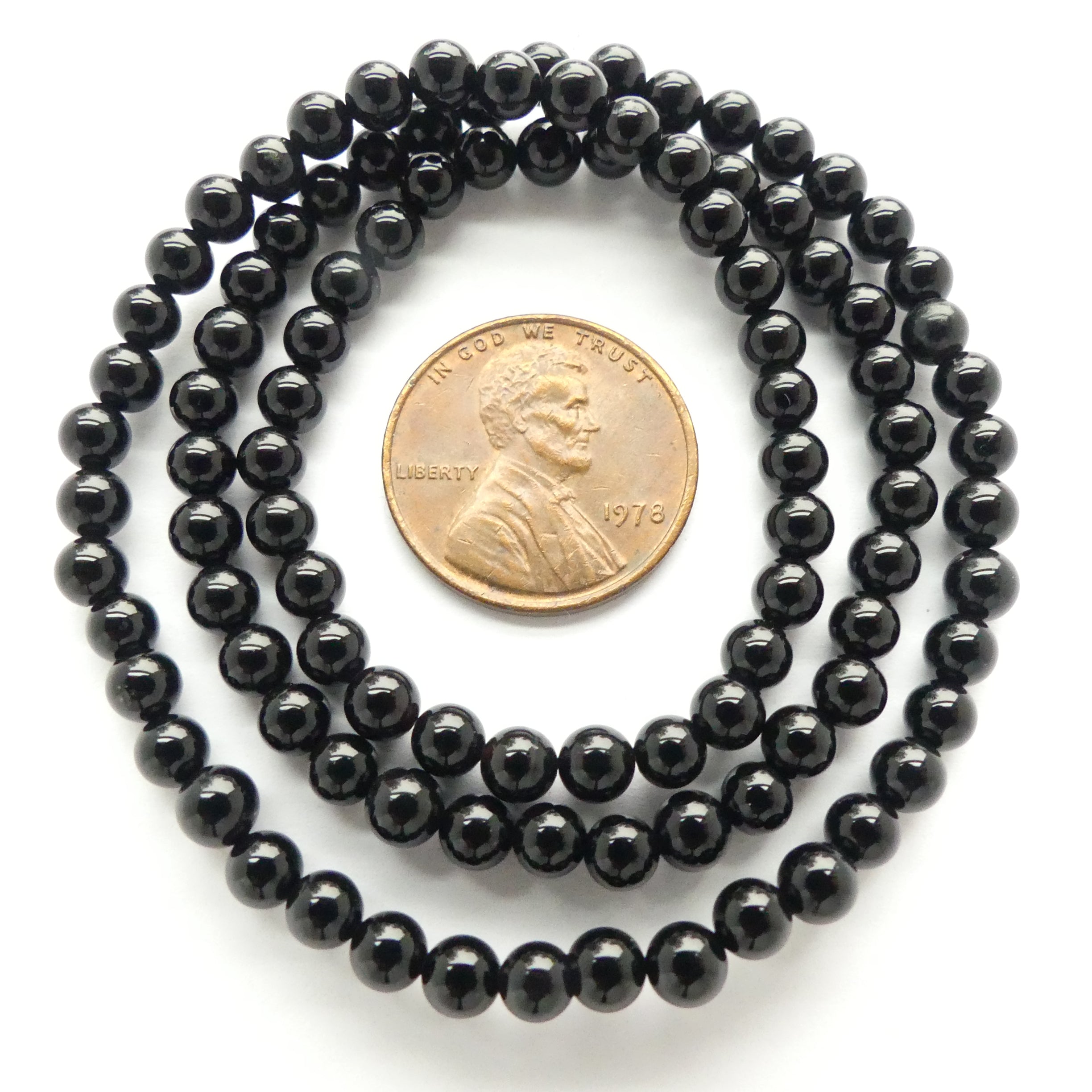 - 4mm Black Onyx round beads on 16" strands