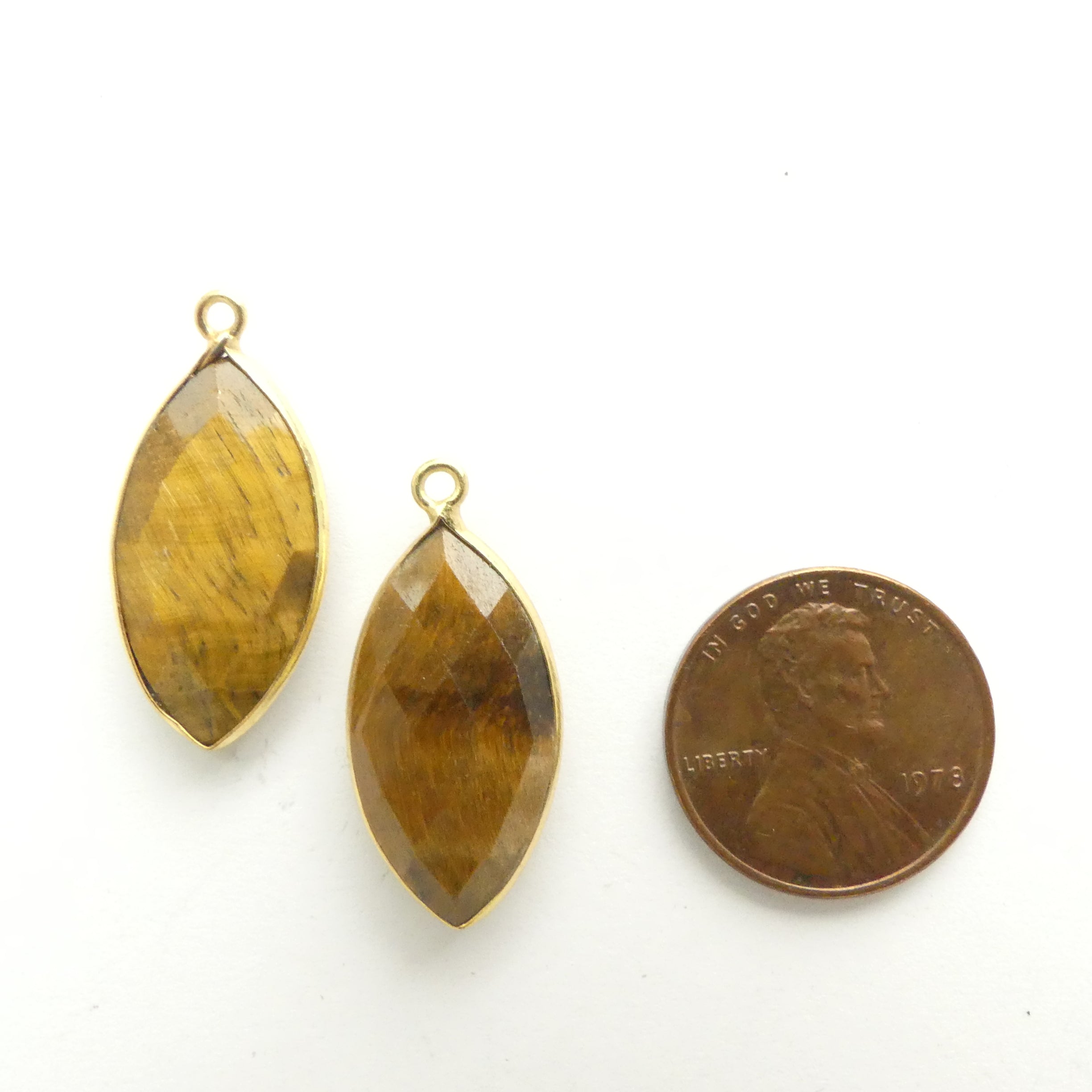 - Faceted Tiger Eye framed (aka bezel-set) in gold plated metal