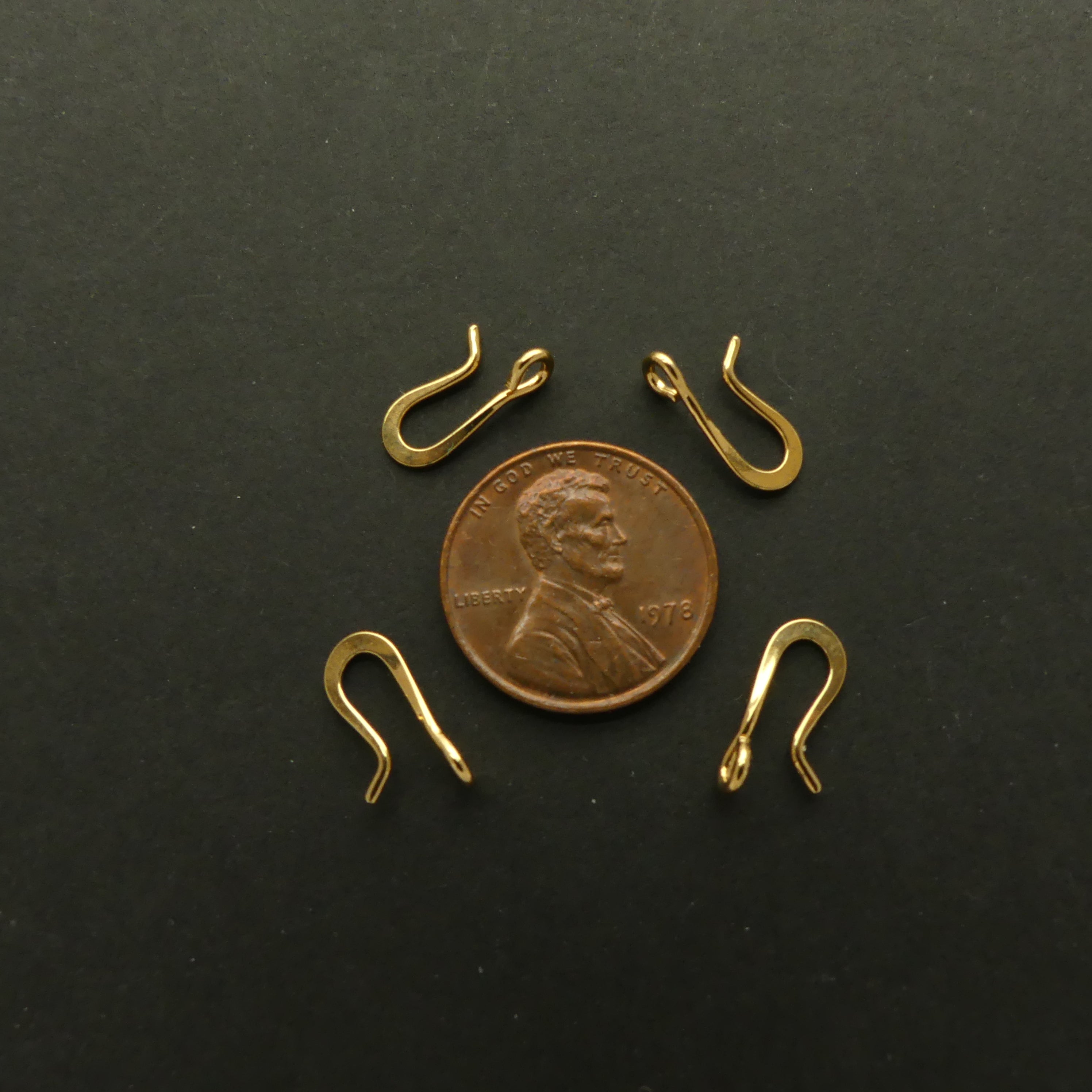 Clasp, J Hook, Tiny Gold Plated, No Rings, Sold by the Set of 4