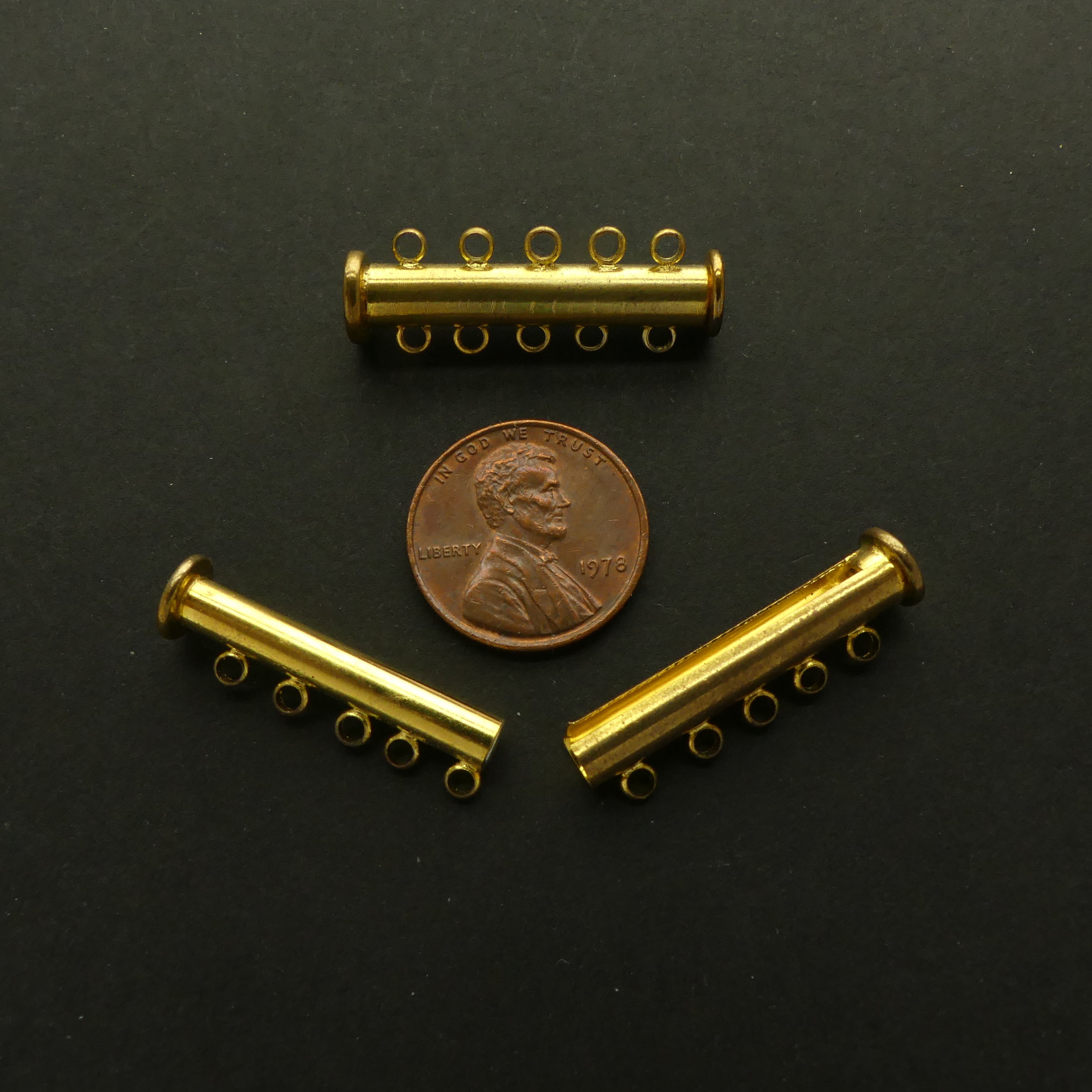 - 5 strand sliding bar clasps gold plated 30mm long