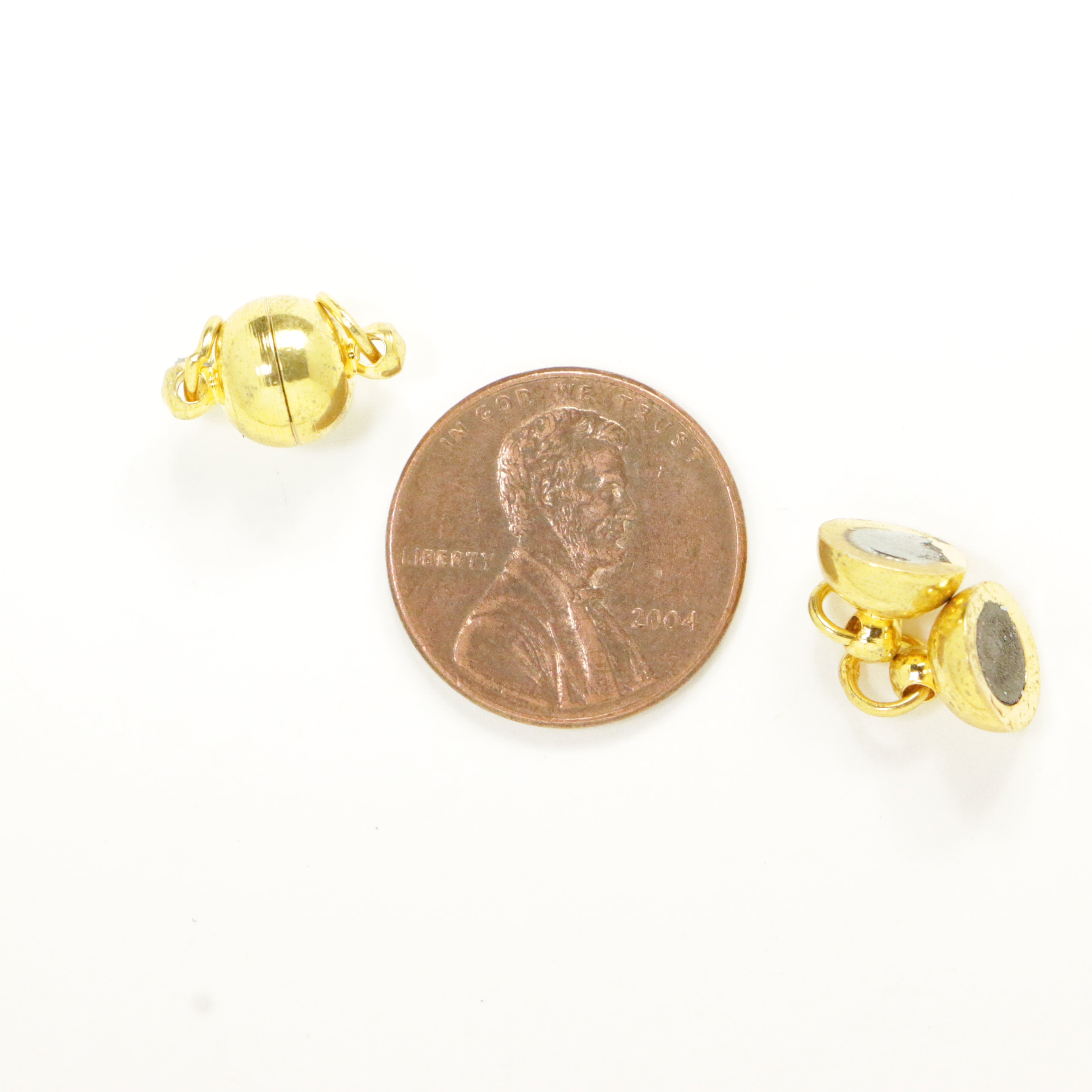 Clasps, Gold Plated Ball Shape Magnetic, 8mm Diameter, Sold in Sets of 2