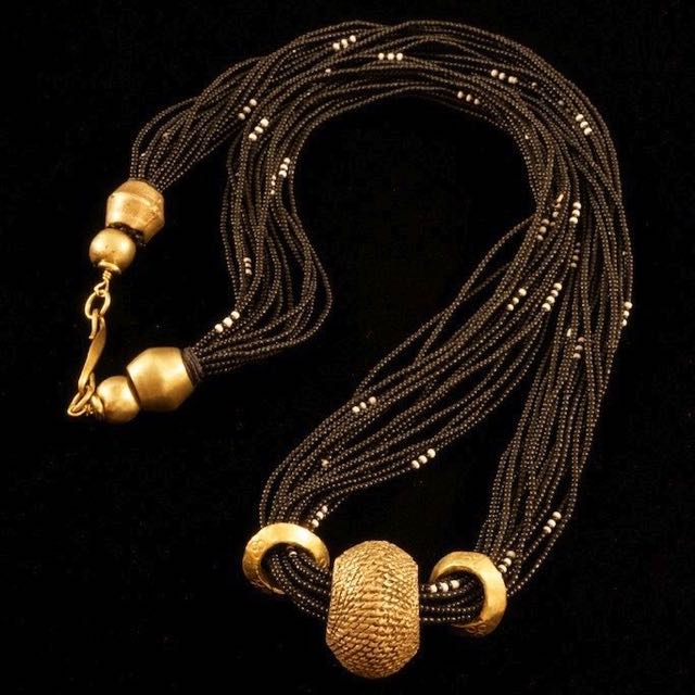 - Hank of 85 strands of black high quality Venetian seed beads attractively interspersed with a few white and red beads.
