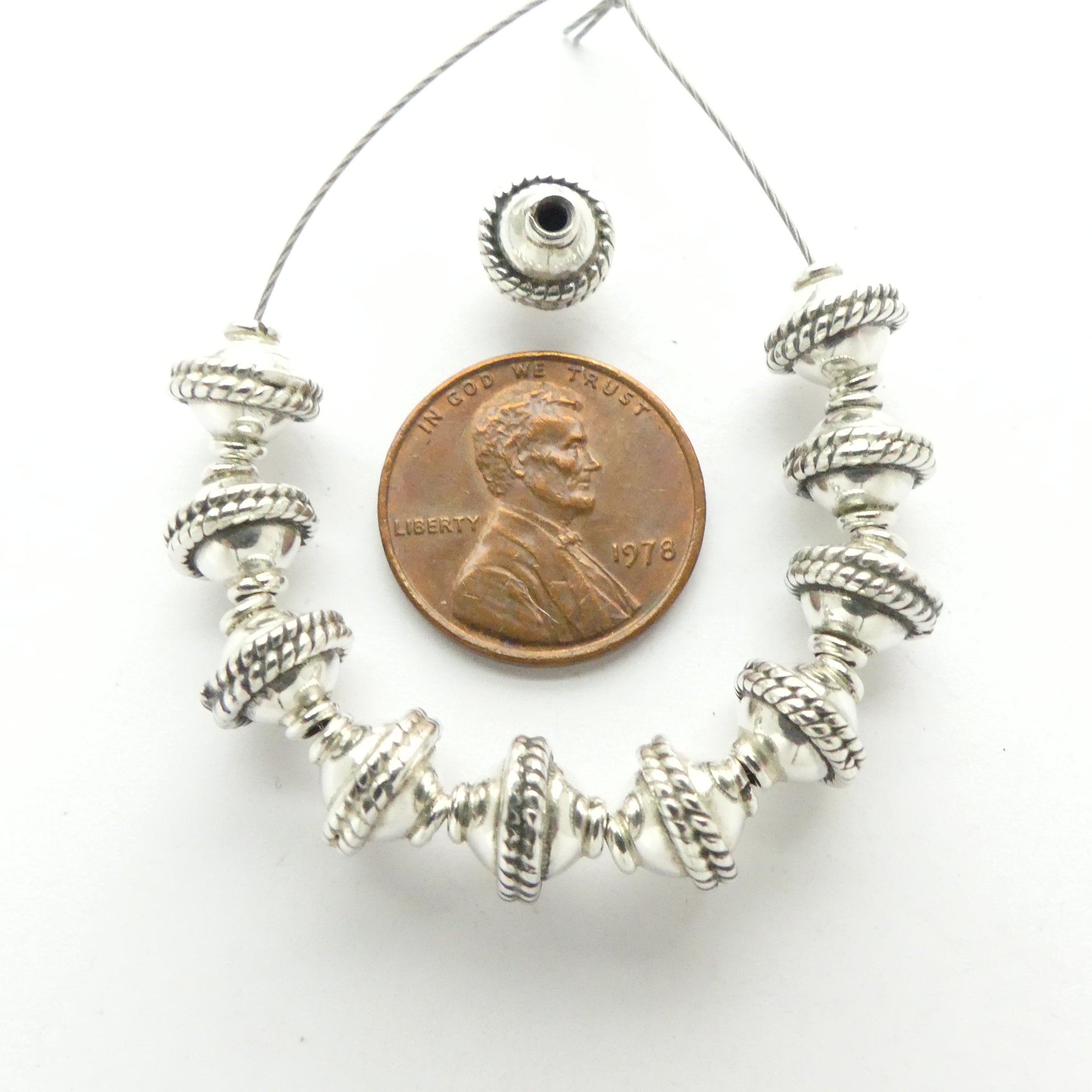 Indian Silver Smooth Round Collared Beads with Equatorial Band, 9x8mm, Sold Individually
