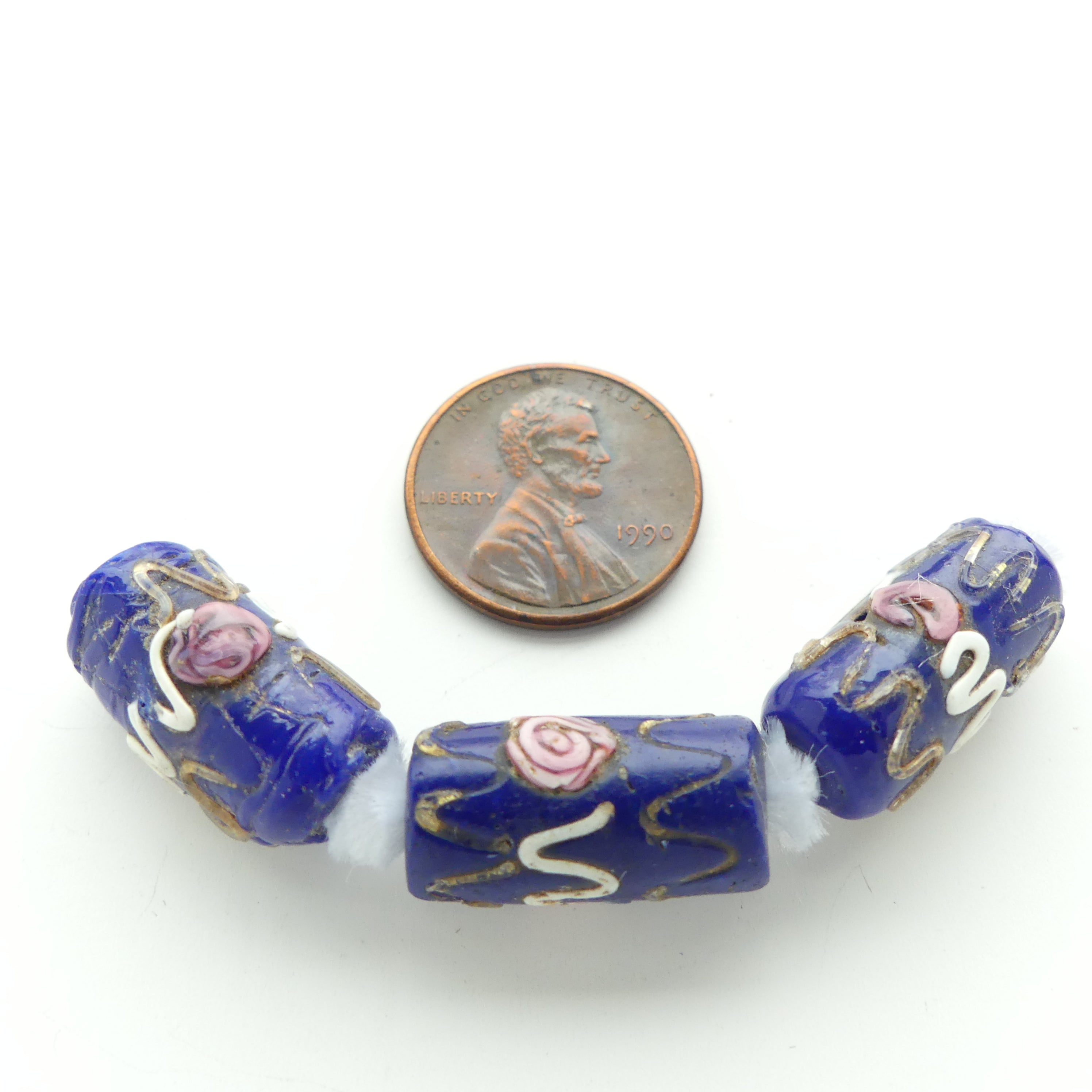 Lampwork, Antique Venetian, Rare Blue "Fancy" Beads with Raised Decor, Set of 3