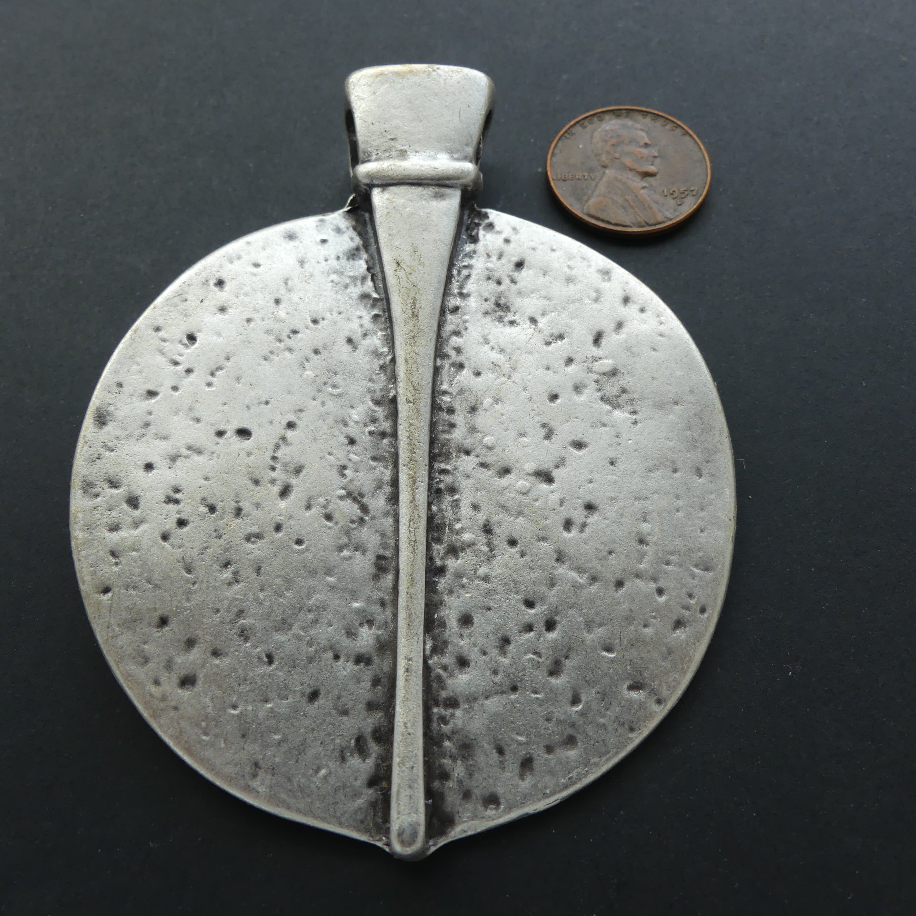 Pendant, Large Turkish White Metal, Circle with Spike, 2.5 inches diameter