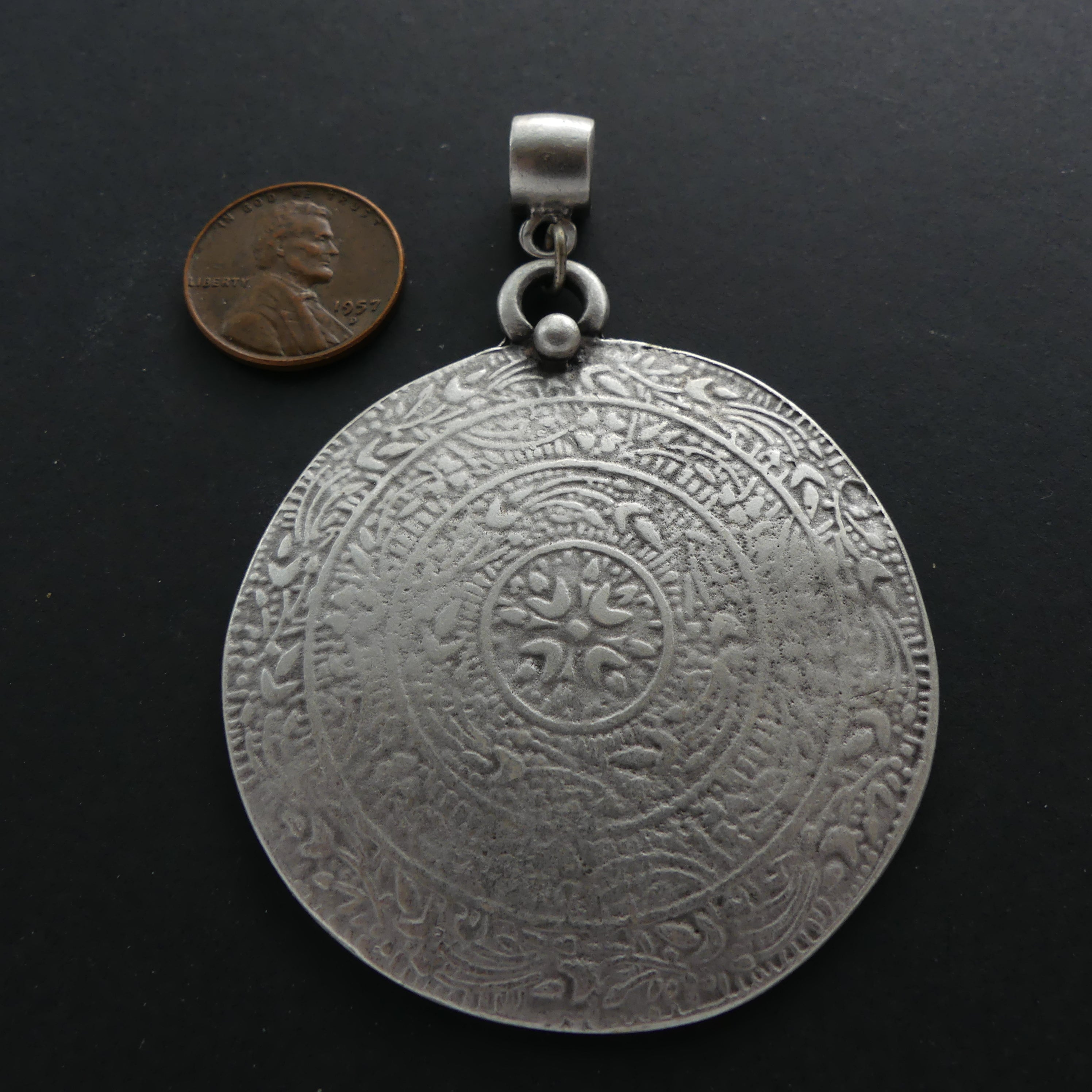 Pendants, Large Turkish White Metal Round With Floral Designs & Large Bail, 52mm diameter