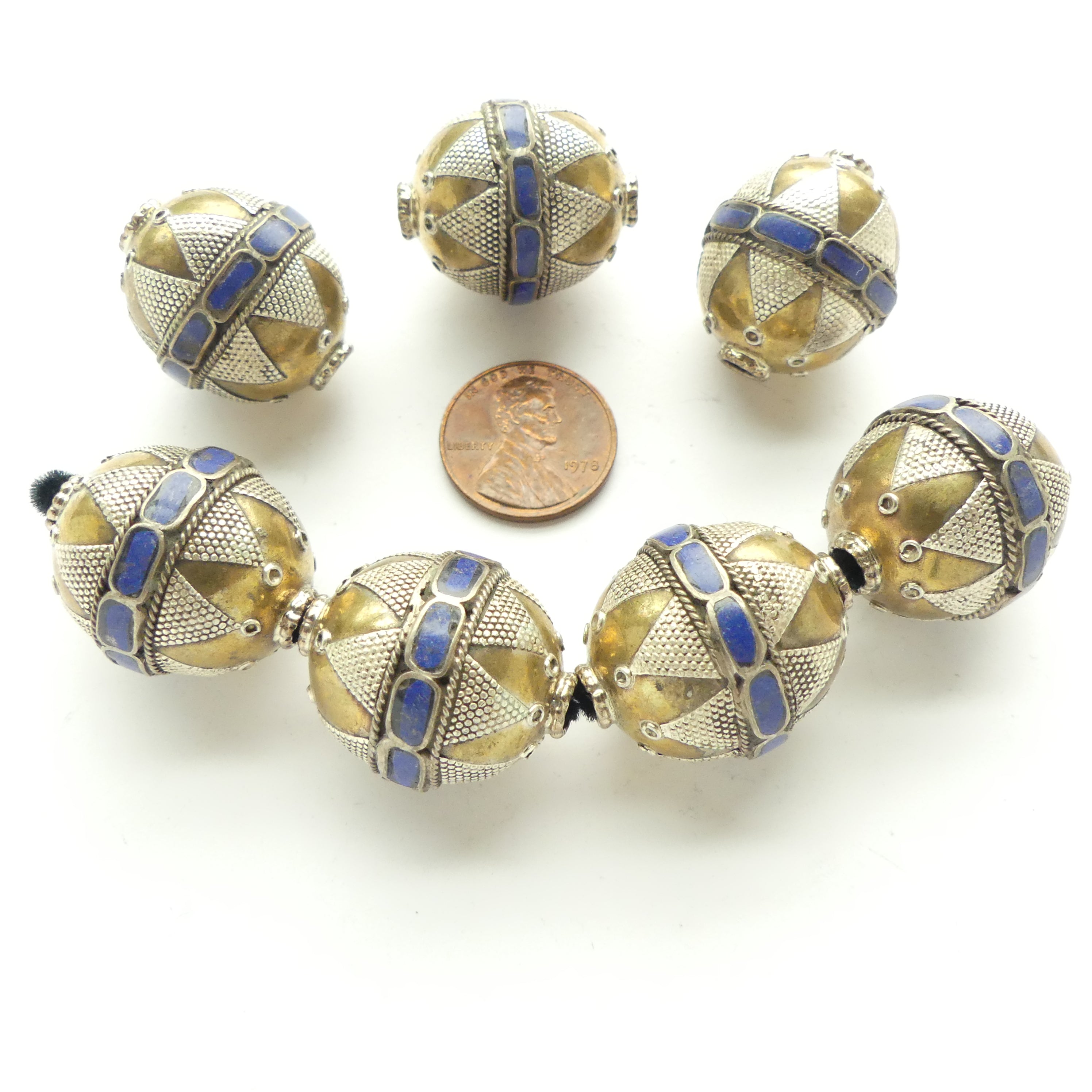 Turkoman, Oval Beads, with Granulation, Fire-Gilding and Lapis Inlay, 25x22, Sold Individually