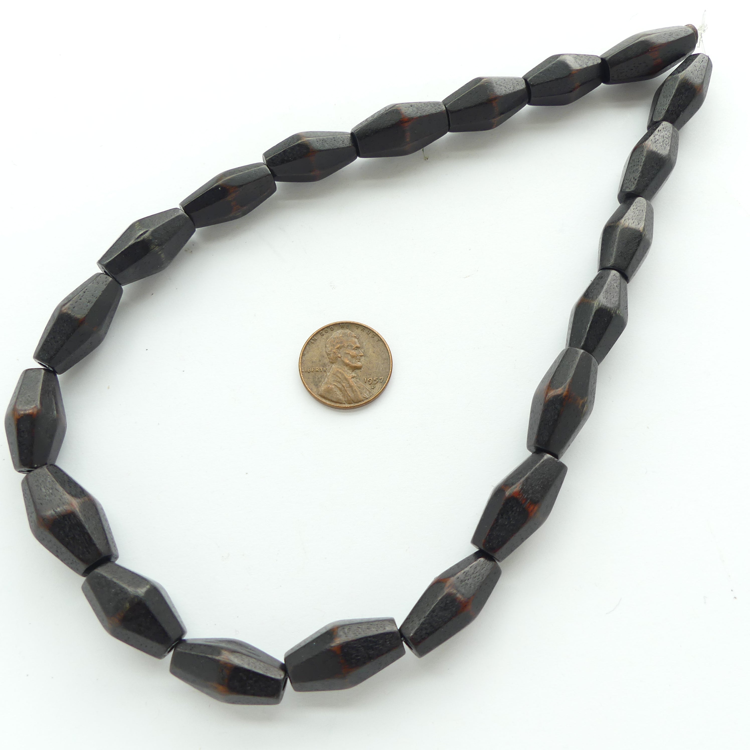 Wood, Faceted Bicones, Dyed Black, 22x12mm on 16-inch Strands